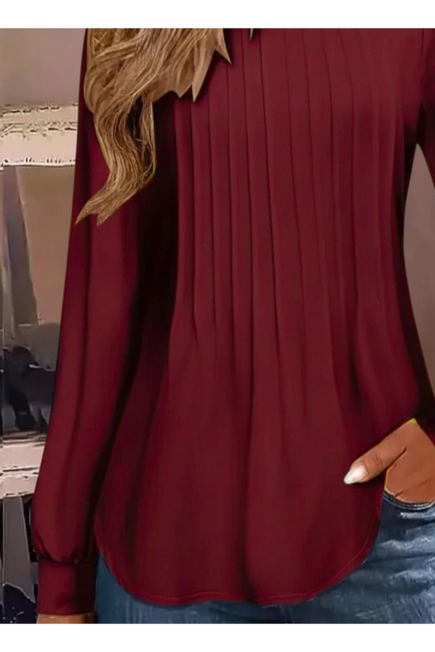 GENCULUS Kadın Uzun Kollu Yuvarlak Yaka Nervürlü Bluz