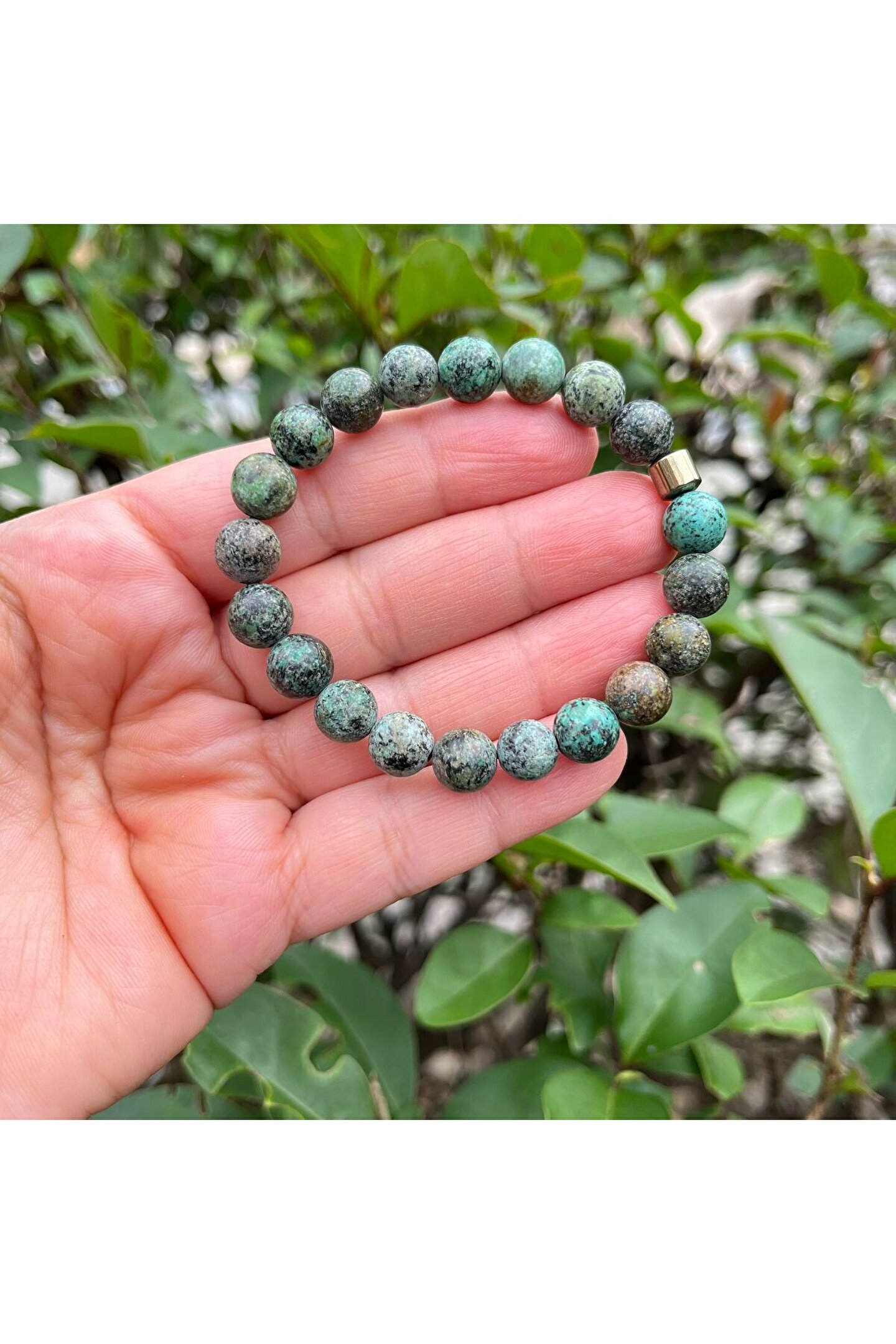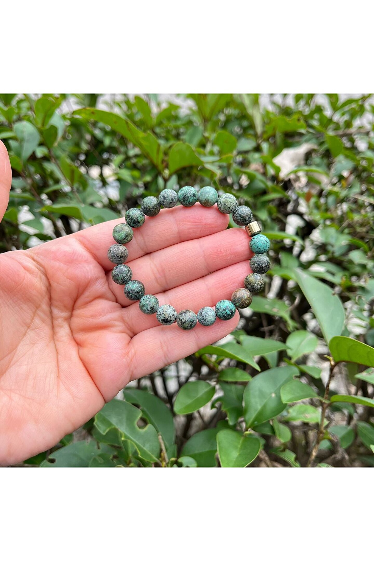 Doğal taş bileklik, her bir bileklikte bulunan benzersiz desen ve renklerle doğanın zarafetini yansıtır; 8 mm kalınlığındaki bu bileklik, hem şıklığı hem de konforu bir arada sunar; Doğal taş kullanımı sayesinde, her bileklik eşsiz bir dokunuşla öne çıkar ve kişisel tarzınıza doğal bir hava katar; El yapımı ve otantik tasarımıyla dikkat çeken bu bileklik, günlük kullanım için idealdir ve özel günlerde de şıklığınızı tamamlar;