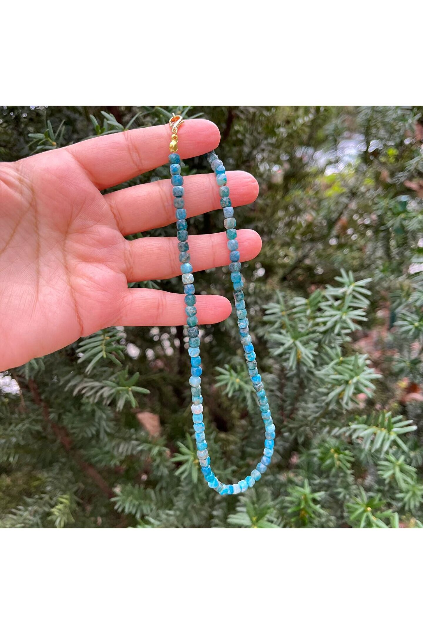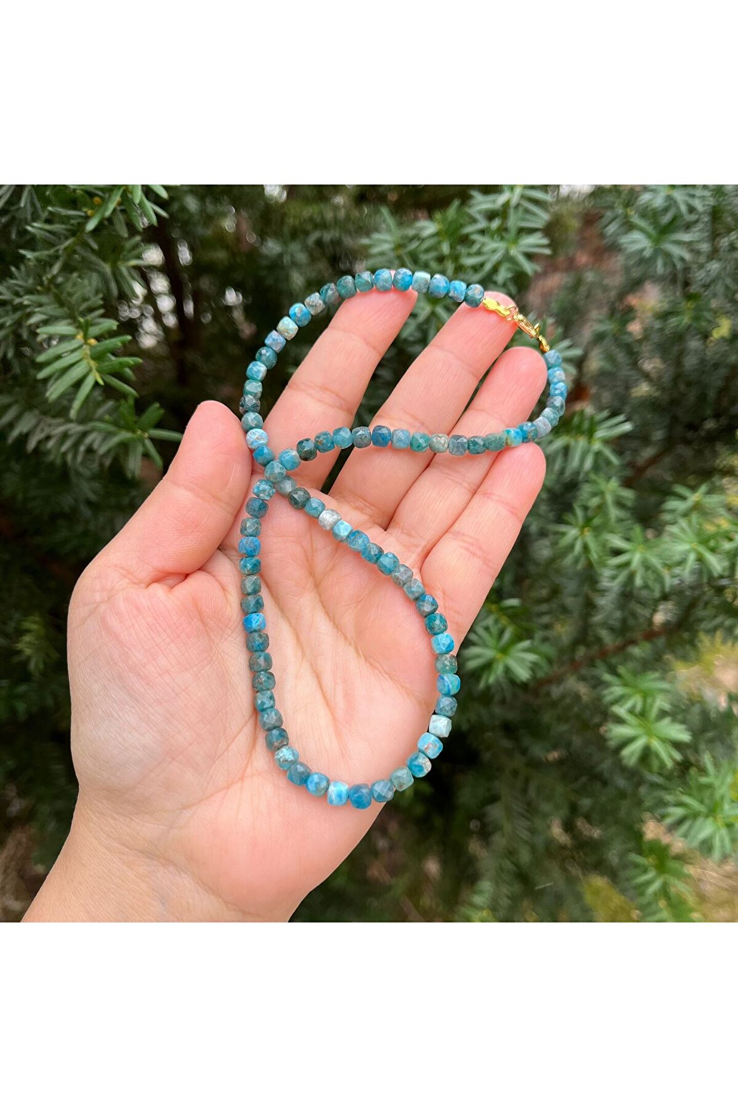 Apatit KüpKesim Doğal Taş Kolye (43 cm) Tümürünlerimiz en iyi kalite doğal taşlardan oluşmaktadır Doğaltaşlar doğada da aynı renk ve dokularda çıkmadığı için görseldeki üründenufak farklılıklar gösterebilir; (gün ışığı,enerji ve ter sebebiyle) Ürünlerinizişampuan,sabun,kolonya,deterjan gibi kimyasallardan korumanız gerekmektedir;