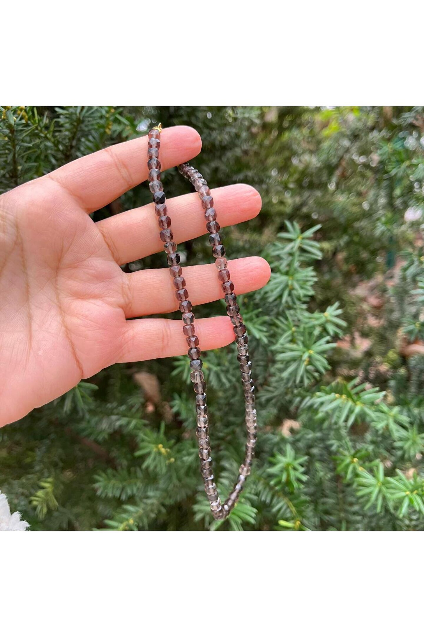 Gepstone Dumanlı Kuvars Küp Kesim Doğal Taş Kolye 43 CM