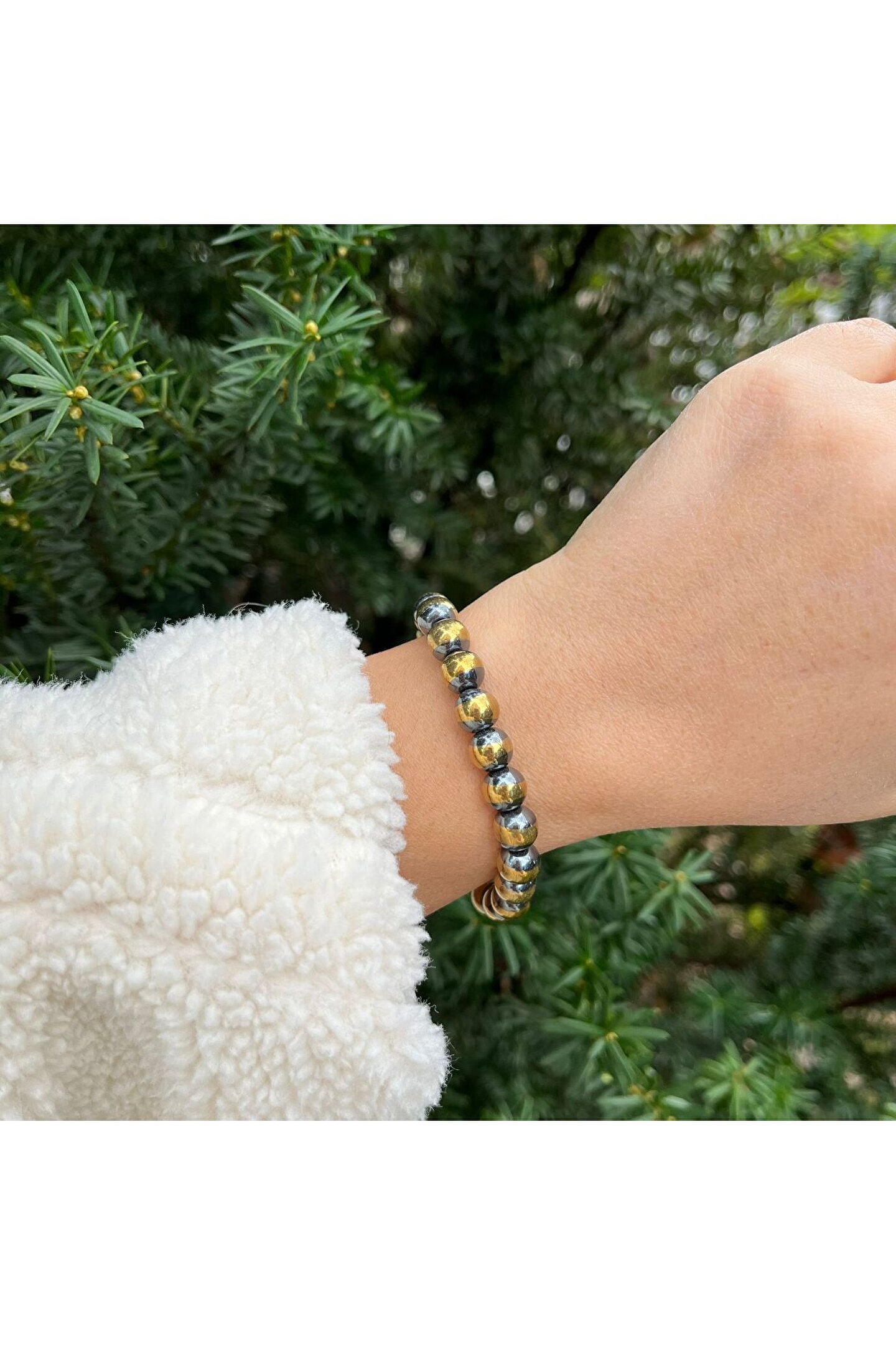 Hematit doğal taş bileklik. ; (8 MM) Tüm ürünlerimiz en iyi kalite doğal taşlardanoluşmaktadır Doğal taşlar doğada da aynı renk ve dokulardaçıkmadığı için görseldeki üründen ufak farklılıklar gösterebilir. ; Tüm ürünlerimizi yedek taş ve misina ile hediye paketiyaparak göndermekteyiz Siparişinizden sonra bilek ölçüsü belirtirsenizistediğiniz ölçüde hazırlanır. ; Ürünlerinizi şampuan,sabun,kolonya,deterjan gibikimyasallardan korumanız gerekmektedir. ; Hematit taşı özellikle eklem ağrıları için kullanılır. ; Doğal taşları arındırma görevini de üstlenir. ; Hafızayı kuvvetlendirir ve saç sağlığı için kullanılır.;