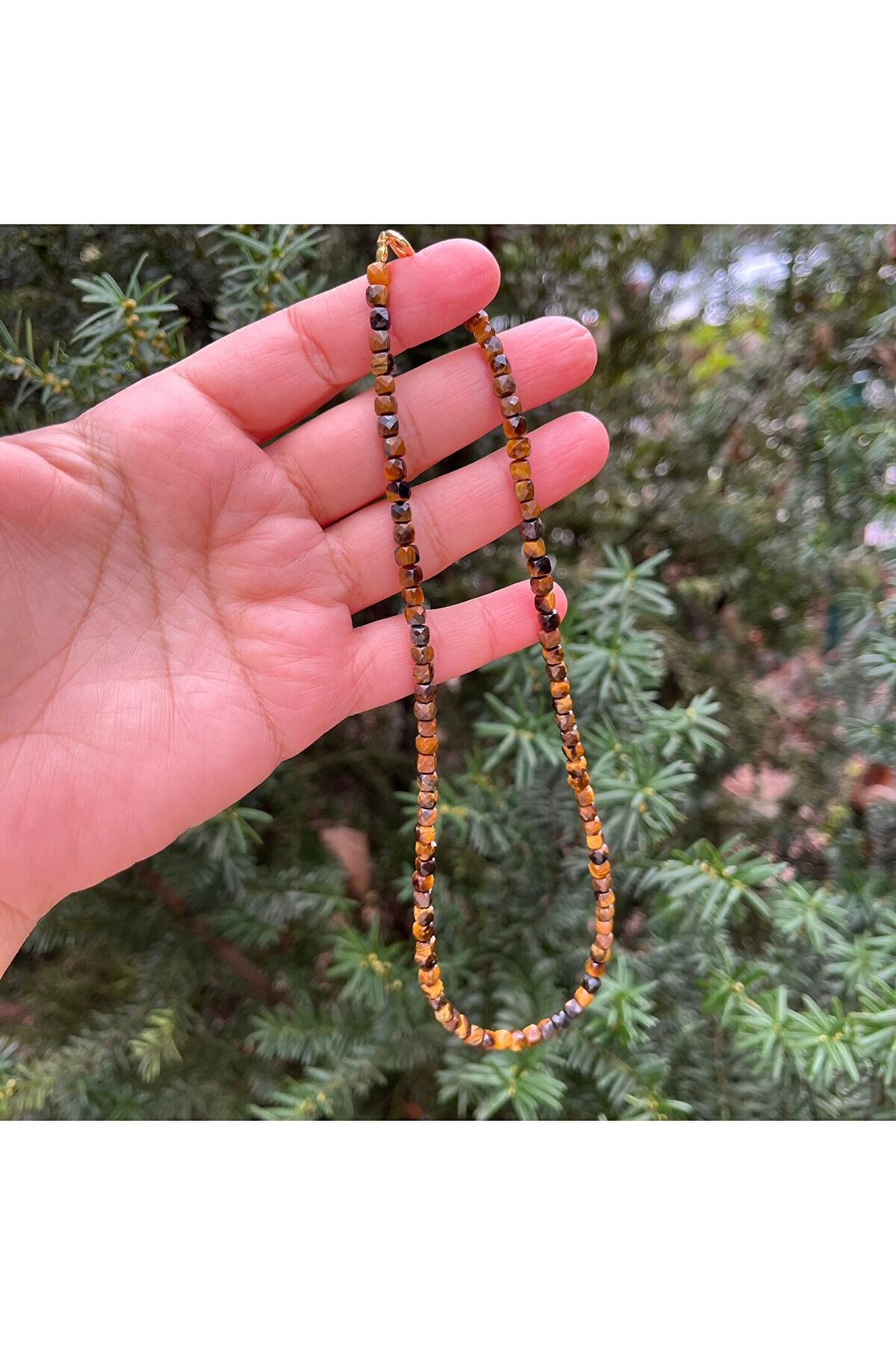 Doğal taş kullanımı sayesinde her kolye benzersiz ve otantik bir görünüm sunar; Kaplangözü küp kesim doğal taş, zarif ve modern bir tasarıma sahiptir; 43 cm uzunluğundaki bu kolye, boynunuza şık bir dokunuş ekler; Doğal taş materyali ile hem dayanıklılık hem de estetik bir parlaklık sağlar;