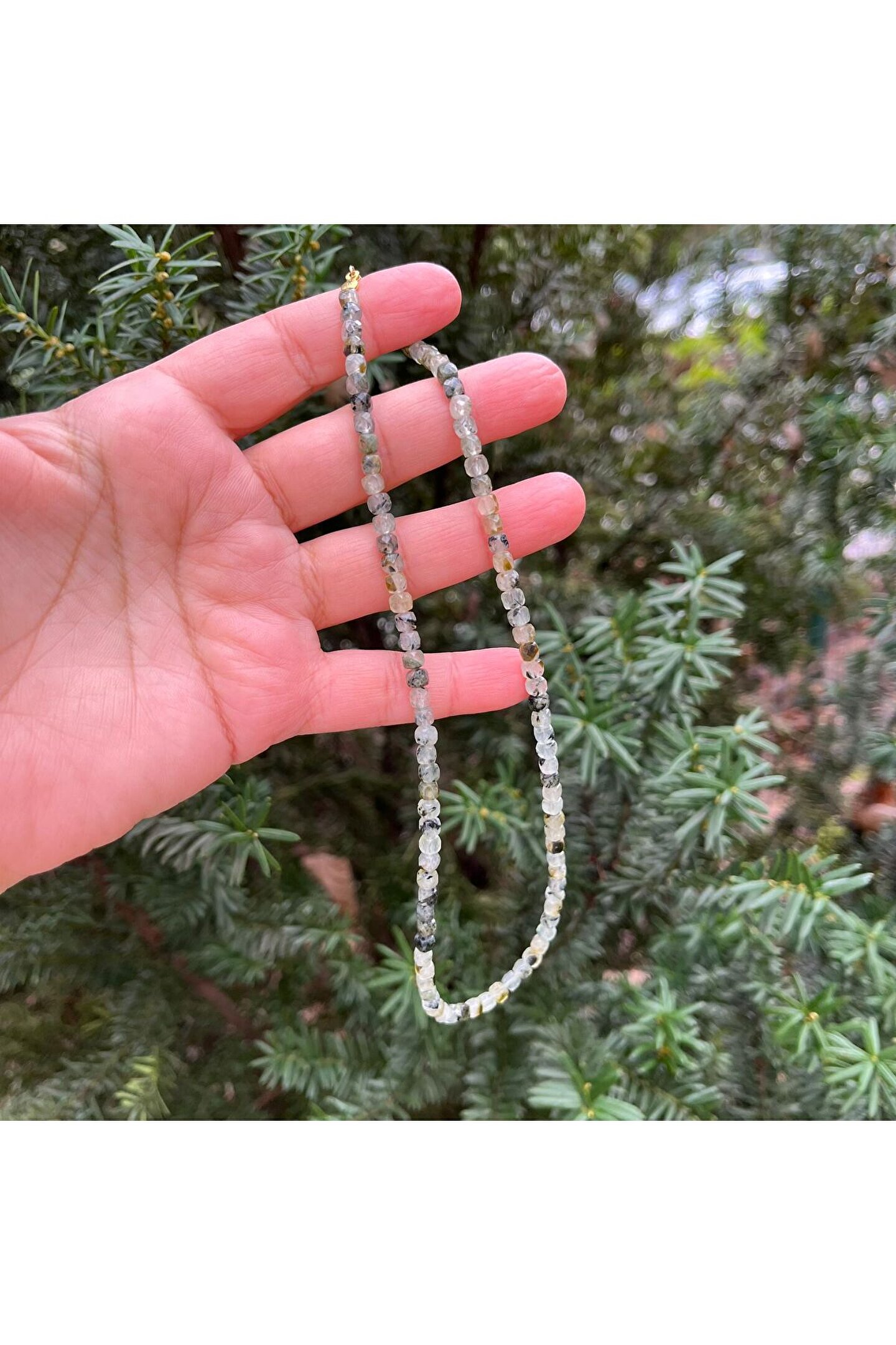 Doğal taş kullanımı sayesinde her kolye benzersiz ve otantik bir görünüm sunar; Prinayt küp kesim doğal taş, zarif ve modern bir stil yaratırken, aynı zamanda dayanıklılığı ile dikkat çeker; 43 cm uzunluğundaki bu kolye, farklı boy ve yaş gruplarına uyum sağlayacak ideal bir uzunluktadır; Doğal taşın eşsiz dokusu ve renk tonları, her türlü kıyafetle kolayca kombinlenebilir ve şıklığınızı tamamlar;