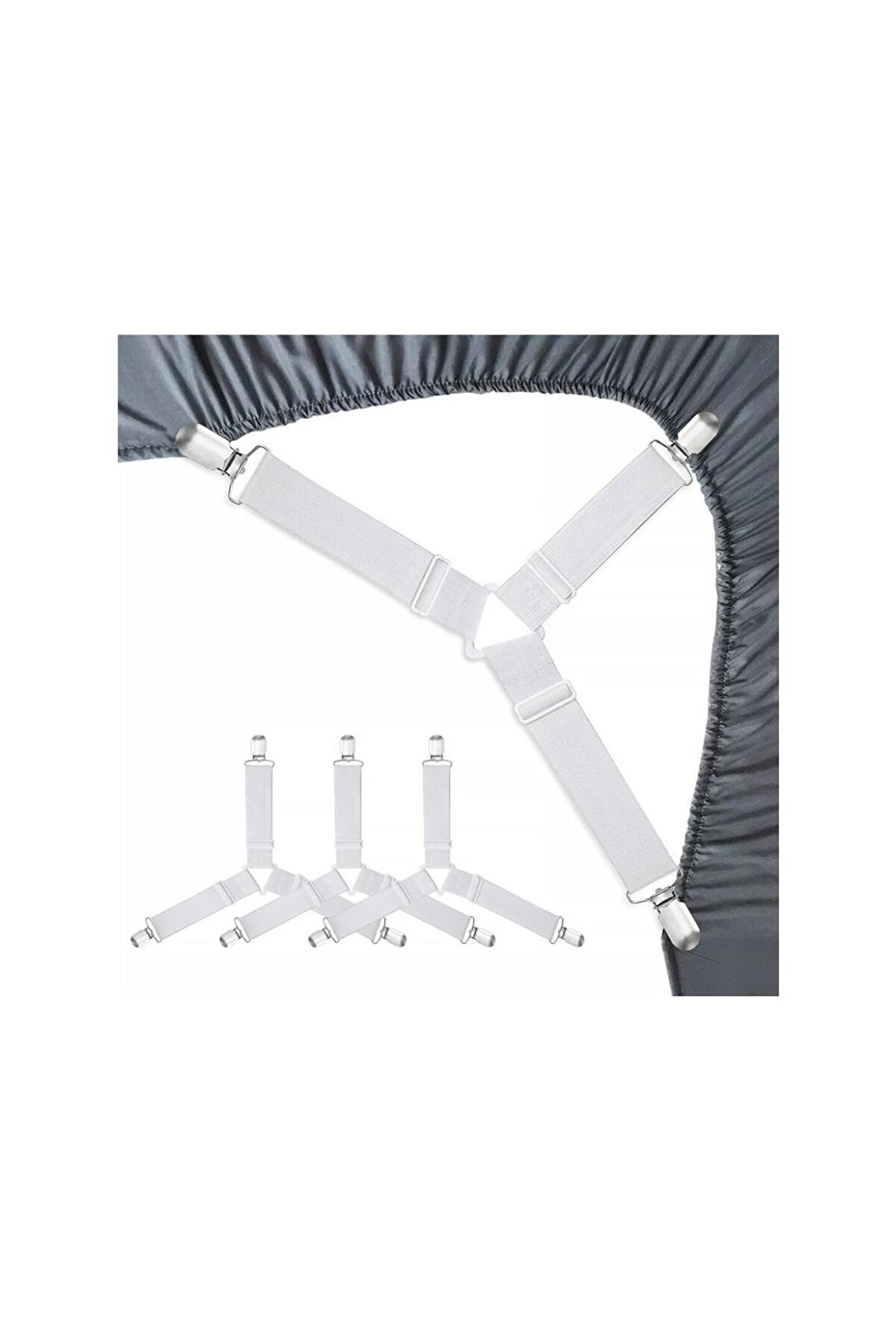 GERCELLA Elastik Üçgen Çarşaf Ve Örtü Gerdiricisi ve çarşaf tutucusu Kısa Tip Beyaz