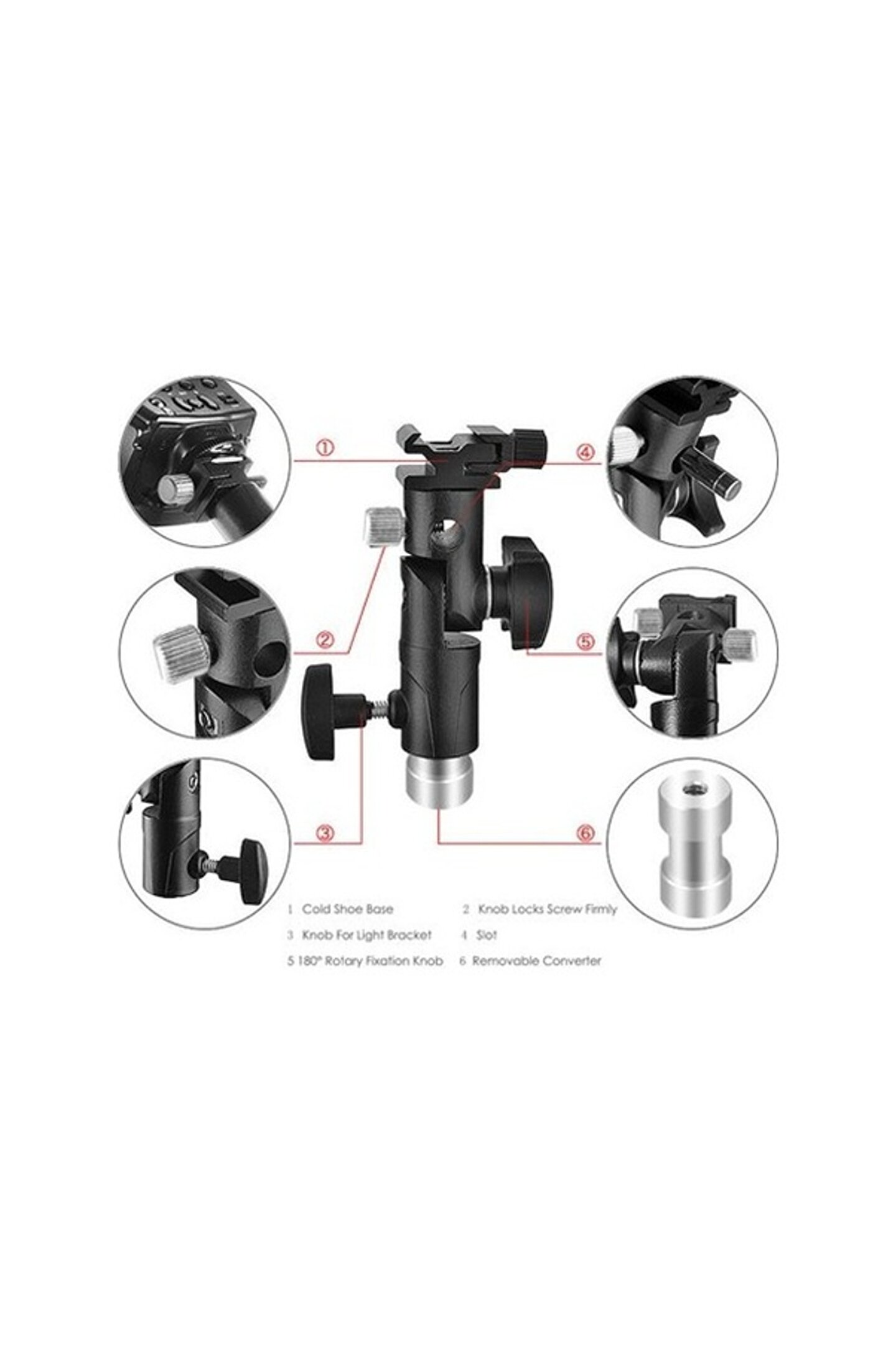 - Hot shoe bağlantısı olan Canon, Nikon, Pentax, Olympus, Yongnuo, Meike, Godox ve daha pek çok marka flaşlara uyumludur. ; (Not: Sony ve Minolta flashlara uyumlu değildir) - Şemsiye ve flaş ışığını farklı açıda konumlandırmak için 180 ° dikey ve 360 ° yatay ayarlama sağlar - Üst kısımda hot shoe flash bağlantısı bulunmaktadır istenildiğinde çıkarılarak 1/4" vida kullanılabilir, Ürünün alt kısmındaki bağlantı iki yönlüdür hem 1/4" vida yuvası hemde 3/8" vida yuvası barındırır. ; - Ürünün üzerinde bir delik bulunmaktadır, böylece bir aydınlatma şemsiyesi ekleyebilir ve flaşla hizalayabilirsiniz - Kamera şemsiyesi dirseği alüminyum alaşımdan yapılmıştır, dayanıklı ve sağlamdır. ; Uyumlu Cihazlar: Hot shoe bağlantı noktasına sahip tüm flashlar ile uyum sağlar. ; (Sony ve Minolta flashlara uyumlu değildir);