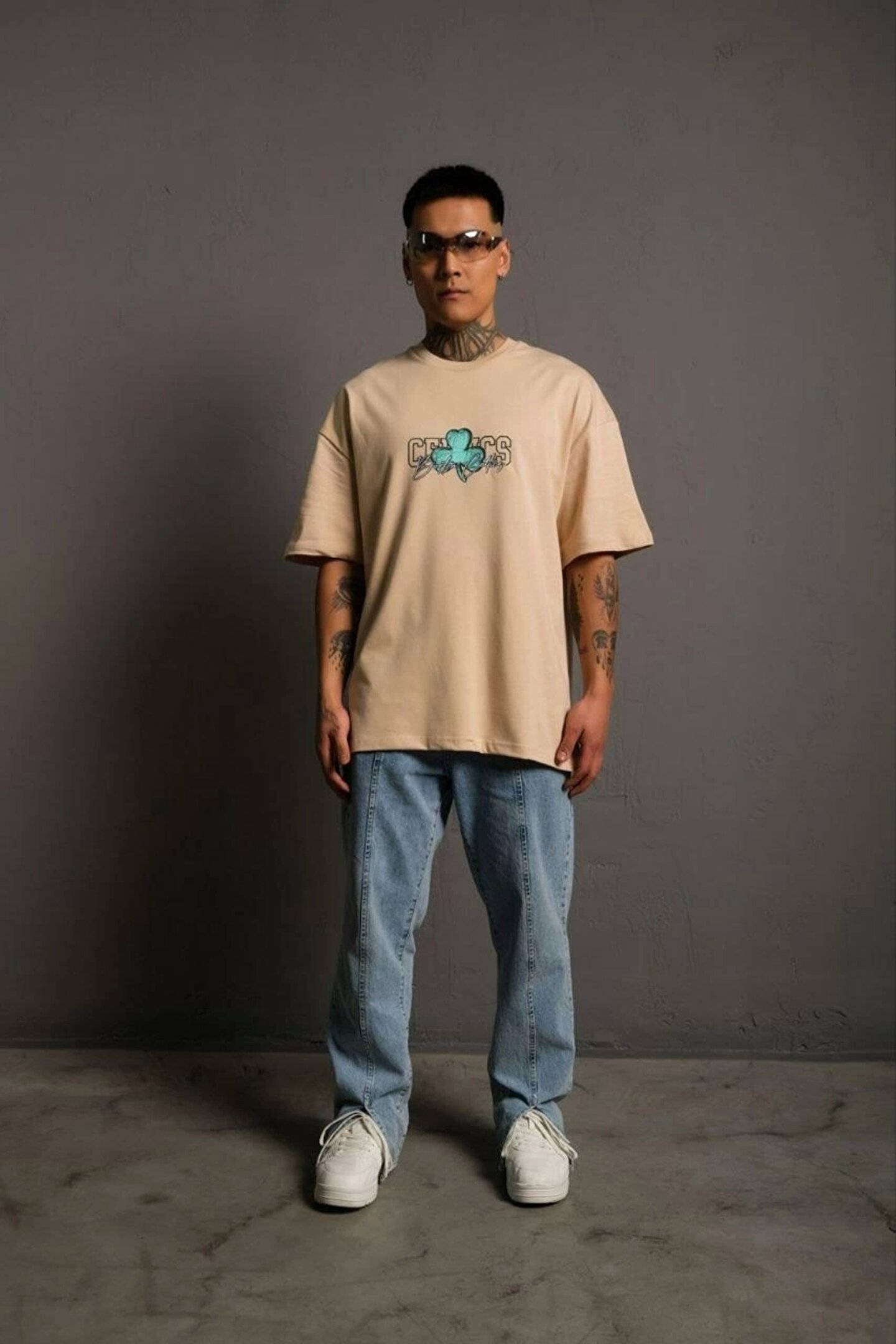 Ghetto Giyim Erkek Sırt Baskılı T-shirt - Bej