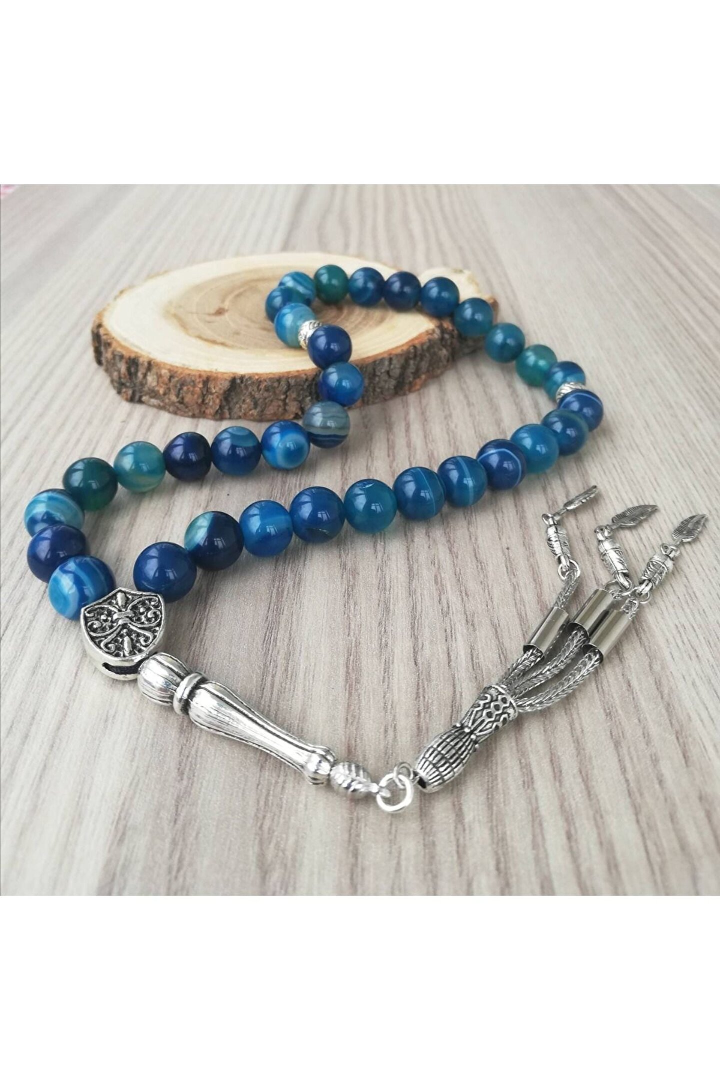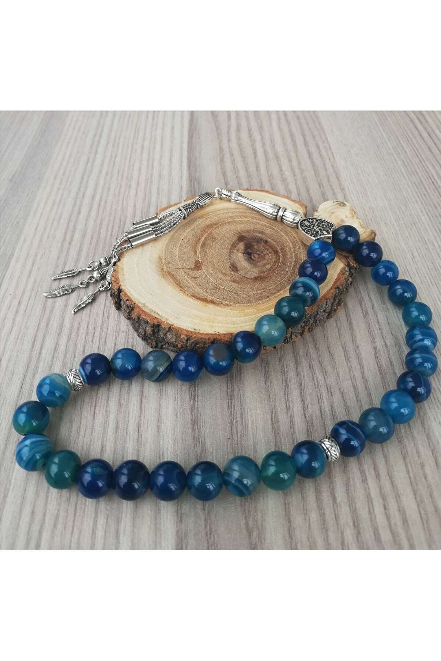 GK DOĞALTAŞ KOPYA - Mavi Beyaz Çizgili Akik Doğal Taş Tesbih 10mm