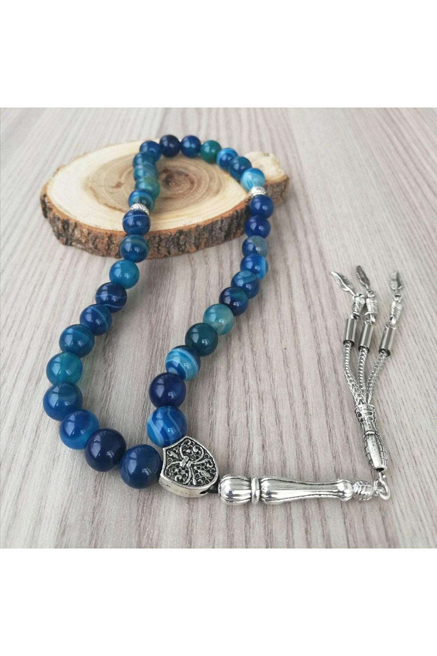 Doğal Akik taşı kullanılarak üretilen bu tesbih, mavi beyaz çizgili deseniyle dikkat çeker.; 10mm boyutundaki boncuklar, zarif ve şık bir görünüm sunarken, el işçiliği ile tamamlanmış yapısıyla benzersizdir.; Doğal taş materyali sayesinde her parça birbirinden farklıdır, bu da her tesbihi eşsiz kılar.; Mavi beyaz çizgili tasarımıyla klasik ve zamansız bir tarza sahip olan bu tesbih, günlük veya özel günlerde tercih edilebilir.; Akik taşı, doğanın sunduğu güzelliği yansıtan renkleri ile göz alıcıdır ve her kullanımda pozitif enerji verir.;