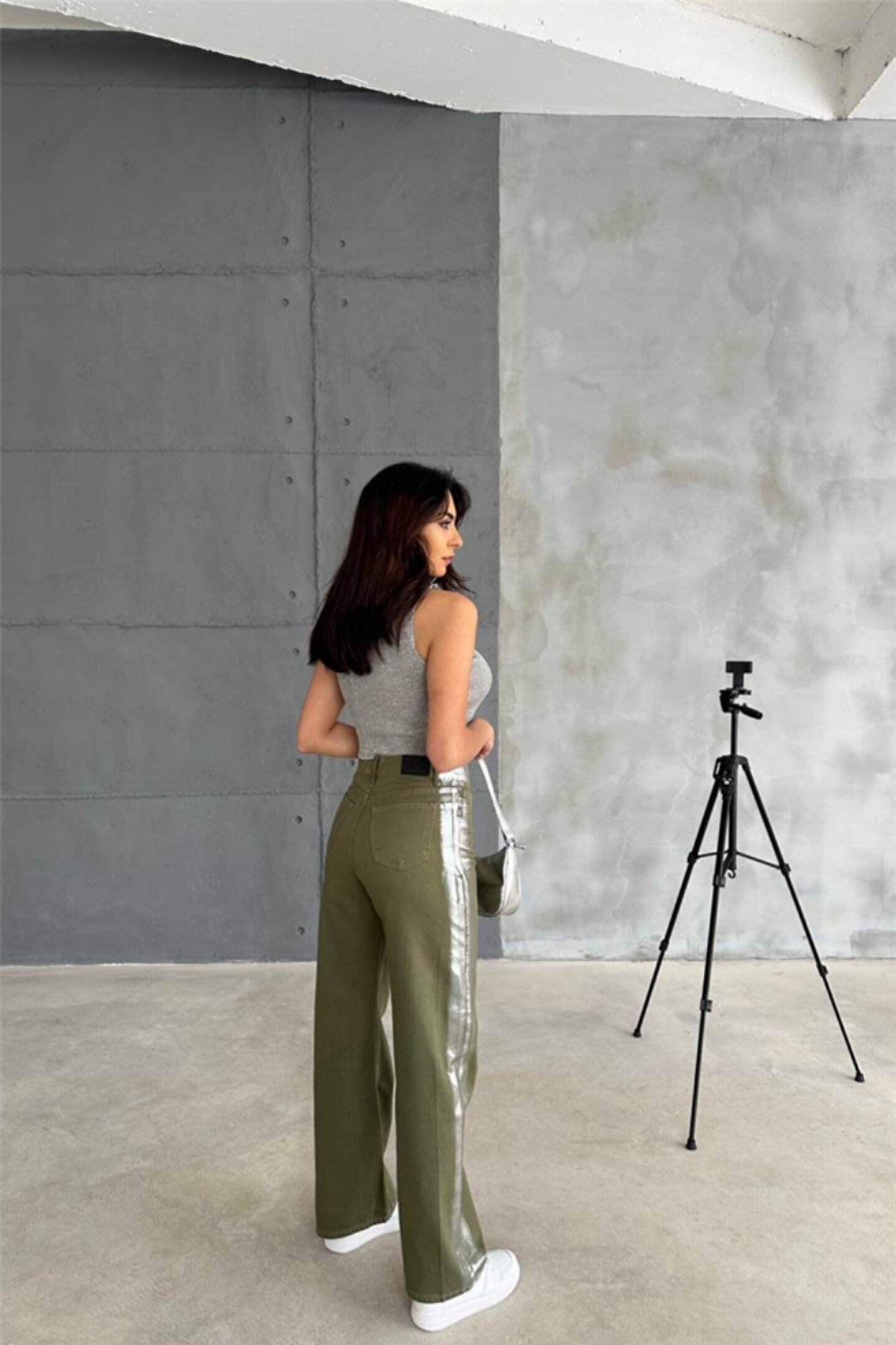 GABARDİN PALAZZO PANTOLON - Haki