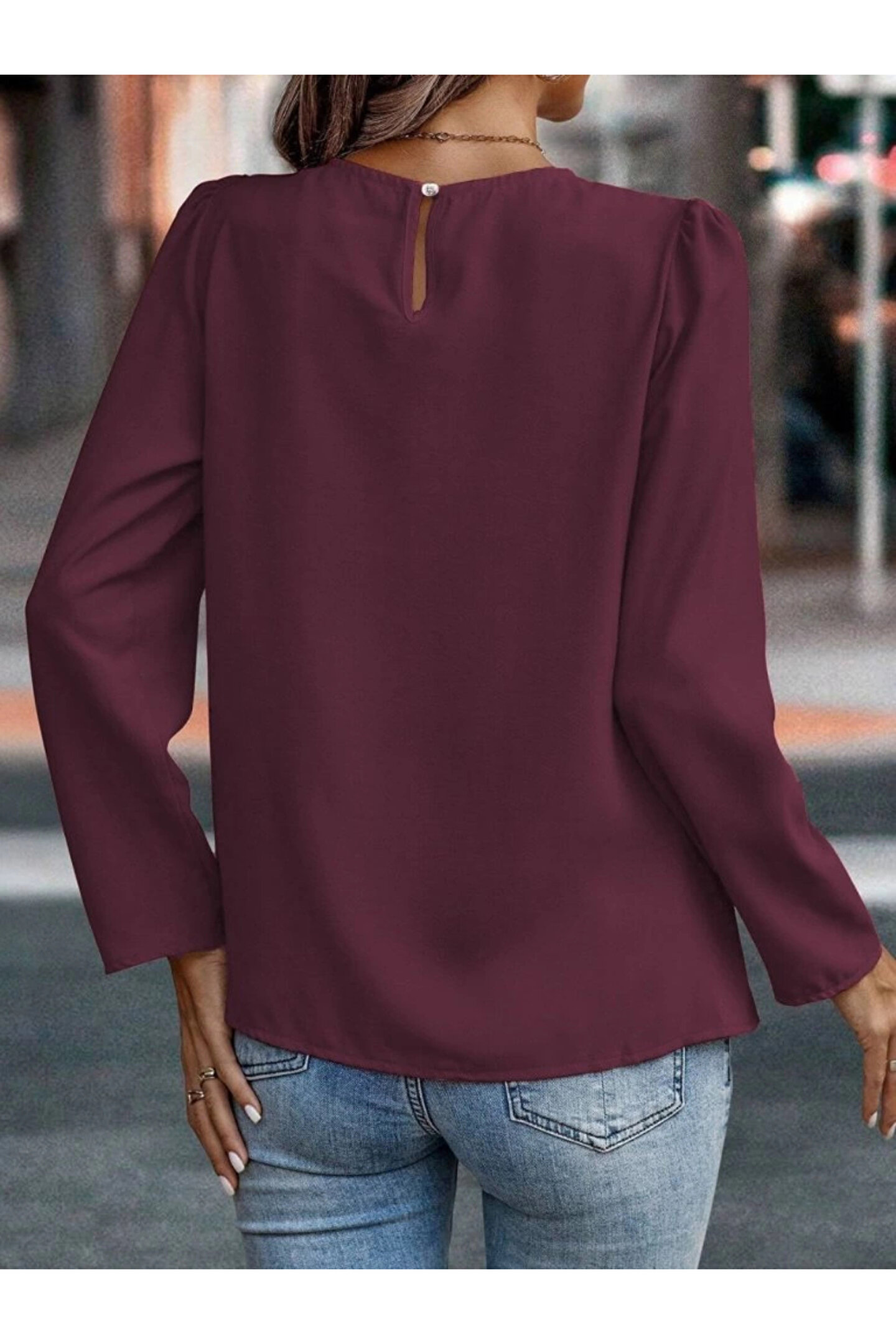 Kadın Uzun Kollu Yuvarlak önden Pileli Ithal Krep Bluz