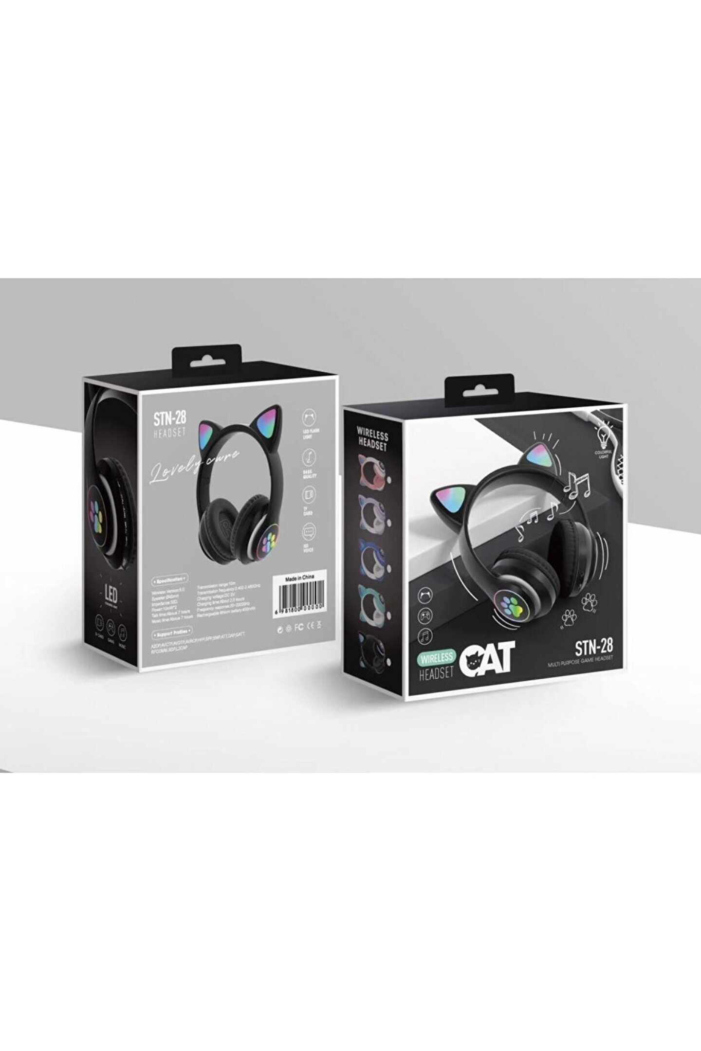 gnctech Siyah Stn28 Kablosuz Bluetooth 5.0 Led Işıklı Kedili Şık Kulaklık Hediye Fm