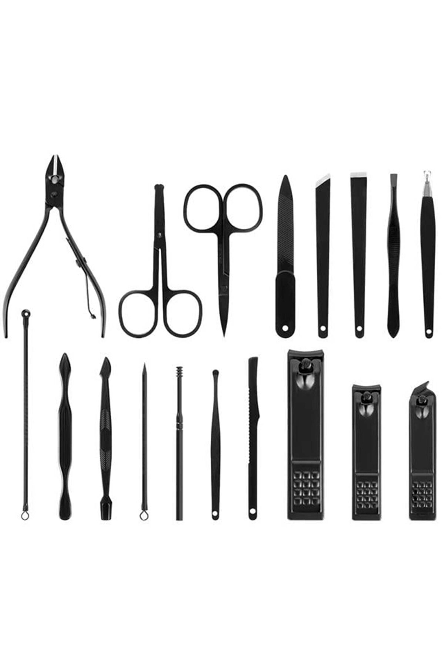 MT-27099 Siyah Paslanmaz Çelik 18in1 Tırnak Bakım Seti; tırnaklarınız ve tırnak kenarlarındaki canlılığını kaybetmiş derileri kesmek, temizlemek amaçlı tasarlanmıştır. Set halinde sizlere sunulan bu ürün tırnaklarınızın temizlenmesini, onarılmasını ve istenilen şekle gelmesini sağlar. Yüksek kaliteli 304 paslanmaz çelikten üretilmiştir. Batmış tırnakları ve hassas alanları hassas şekilde kesmek için idealdir. Tırnak ayrılmasını önler, ayak tırnaklarının batmasını önler.