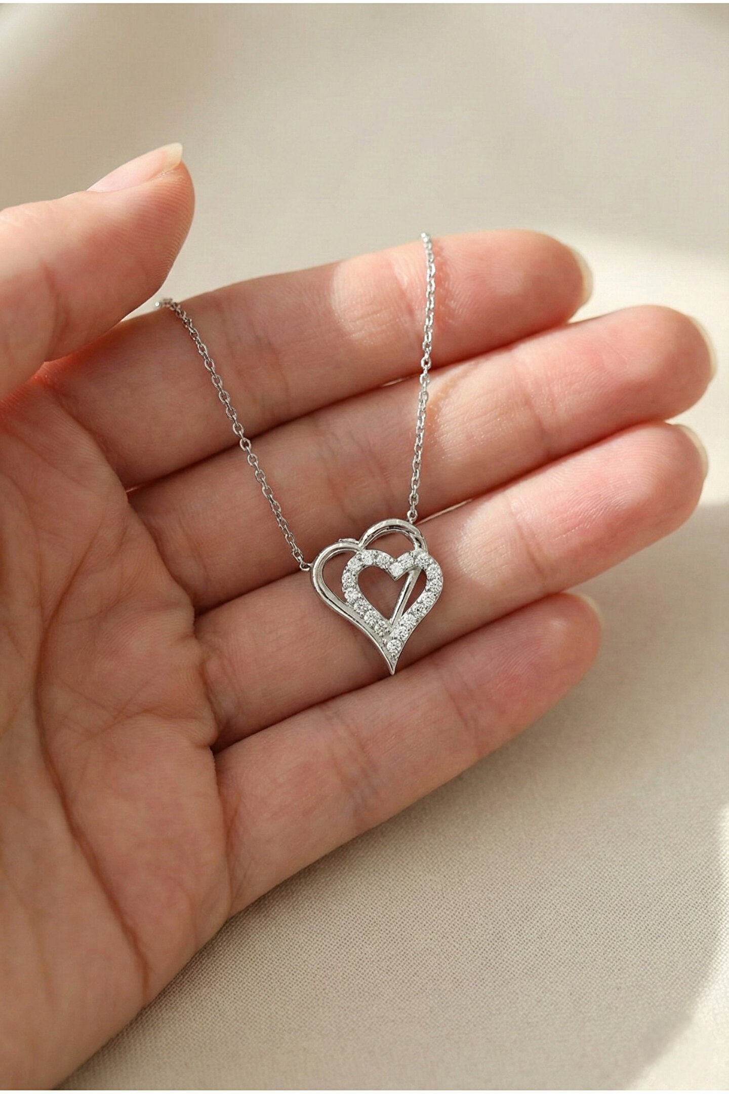 Zarif tasarımıyla dikkat çeken ikili kalp kolye, gümüş rengin asaletini yansıtır; Göz alıcı zirkon taşlarla süslenmiş bu kolye, her türlü özel gününüzde şıklığınızı tamamlar; Kalp şeklindeki detaylar, sevginin ve romantizmin simgesi olarak anlamlı bir hediye seçeneği sunar; Gümüş kolye, hem günlük kullanım hem de özel davetlerde tercih edebileceğiniz zarif bir aksesuardır;