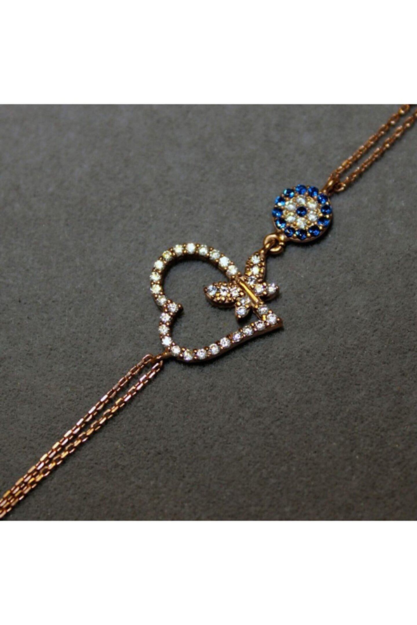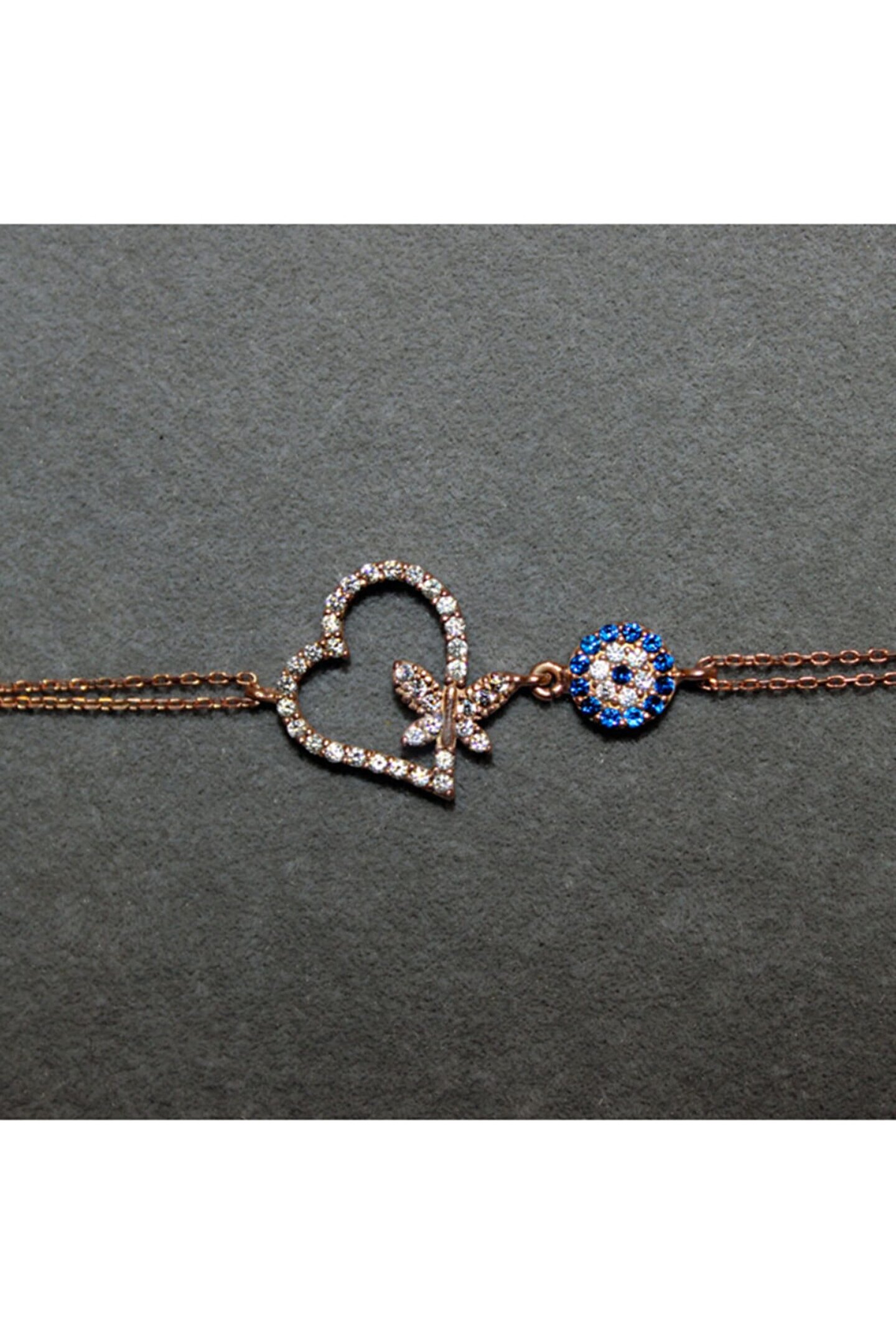 Göğüş Kadın Kelebekli Kalp Bileklik
