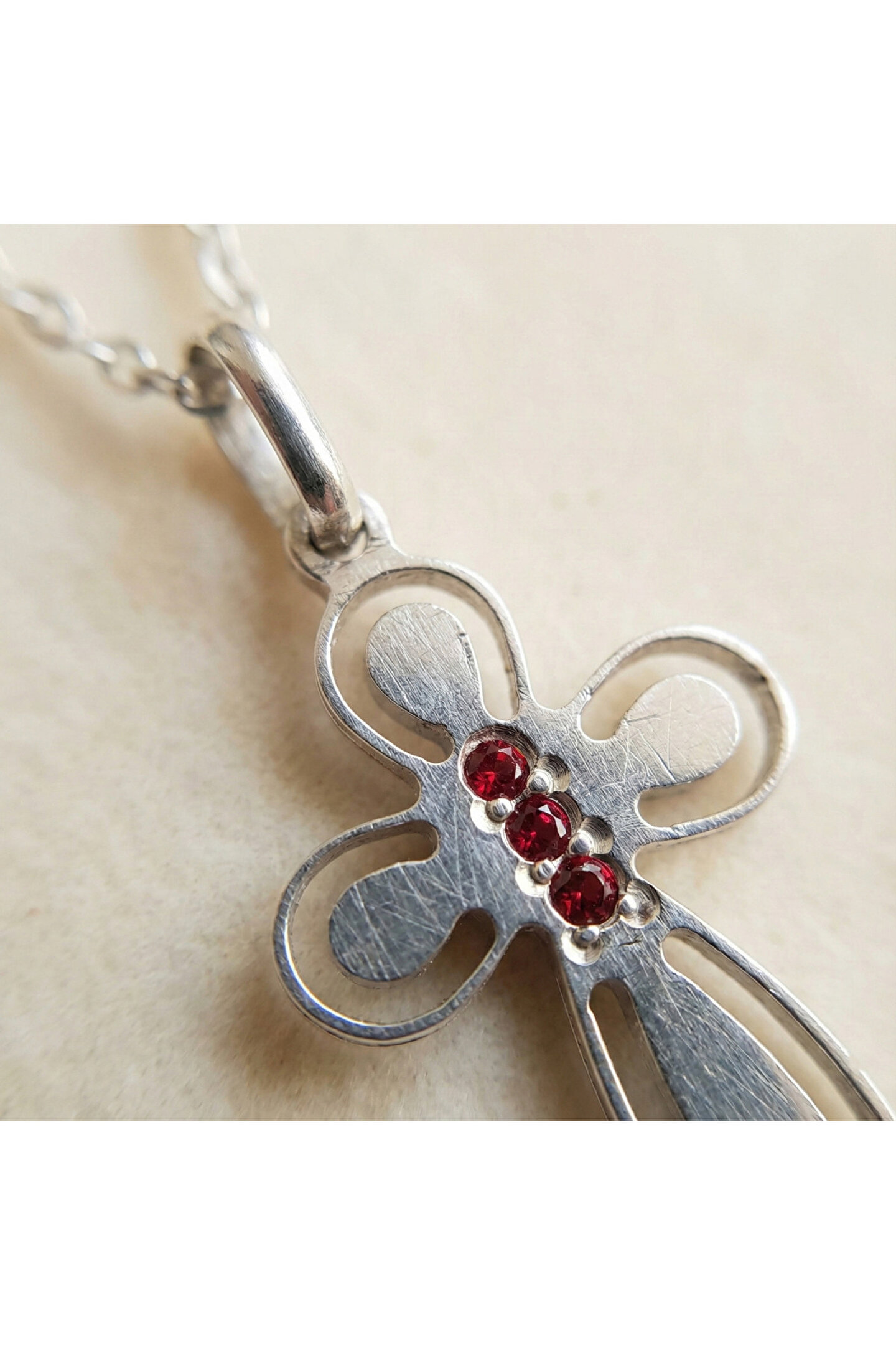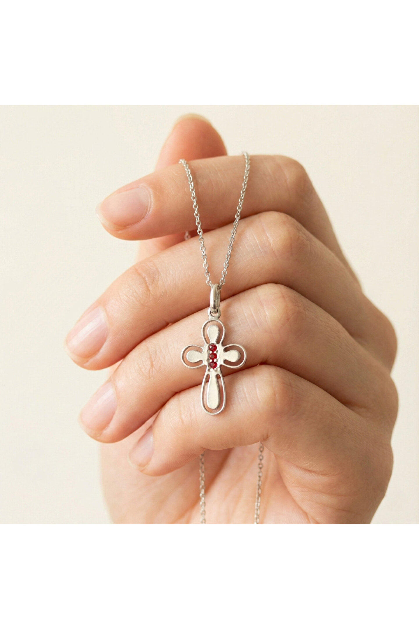 Göğüş Kırmızı Taşlı Haç Kolye