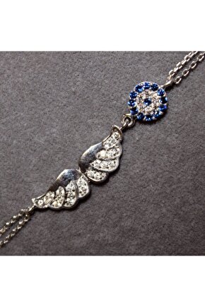 Zarif tasarımıyla dikkat çeken melek kanadı taşlı bileklik, gümüş rengi ve zirkon taş detaylarıyla göz alıcı bir görünüm sunar; Zirkon taş kullanımı sayesinde, bileklik hem şıklığı hem de parıltıyı bir arada barındırır ve her türlü özel gününüzde ışıltınızı ön plana çıkarır; Melek kanadı motifinin zarif çizgileri, bileklik tasarımına modern ve estetik bir dokunuş katarak, günlük kullanım için idealdir; Gümüş rengi ile klasik ve zamansız bir tarz yaratırken, zirkon taşların ışıltısı ile her ortamda dikkat çekici bir aksesuar olmanızı sağlar;
