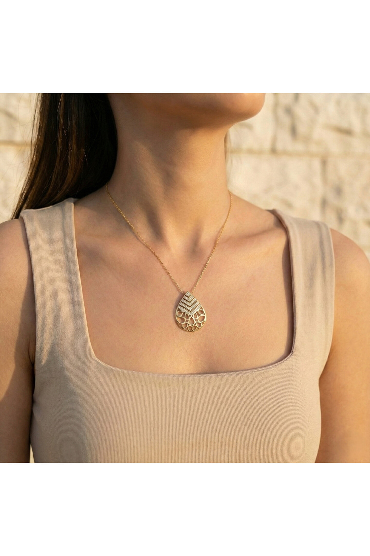 Göğüş Osmanlı Motif Su Damlası Kolye