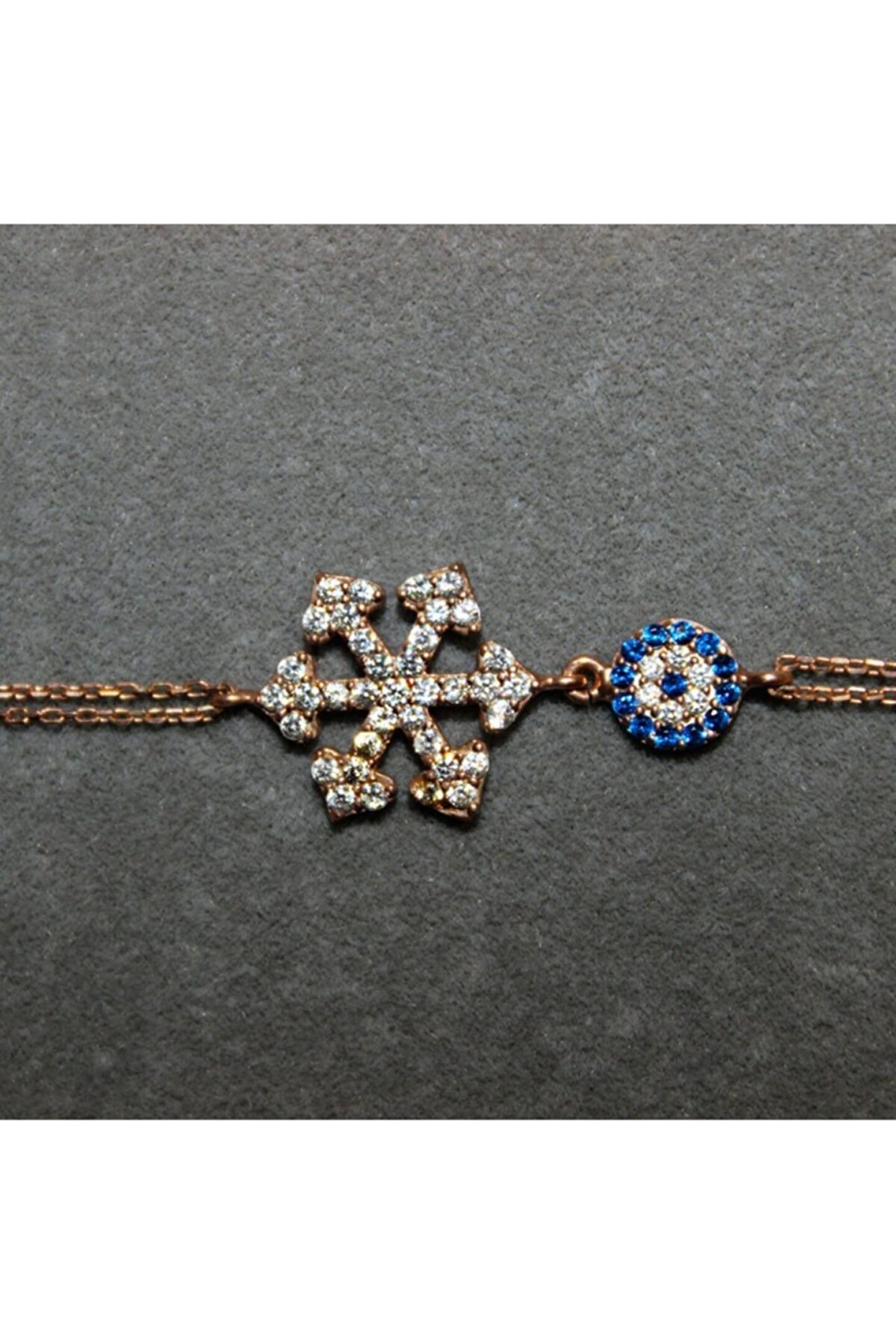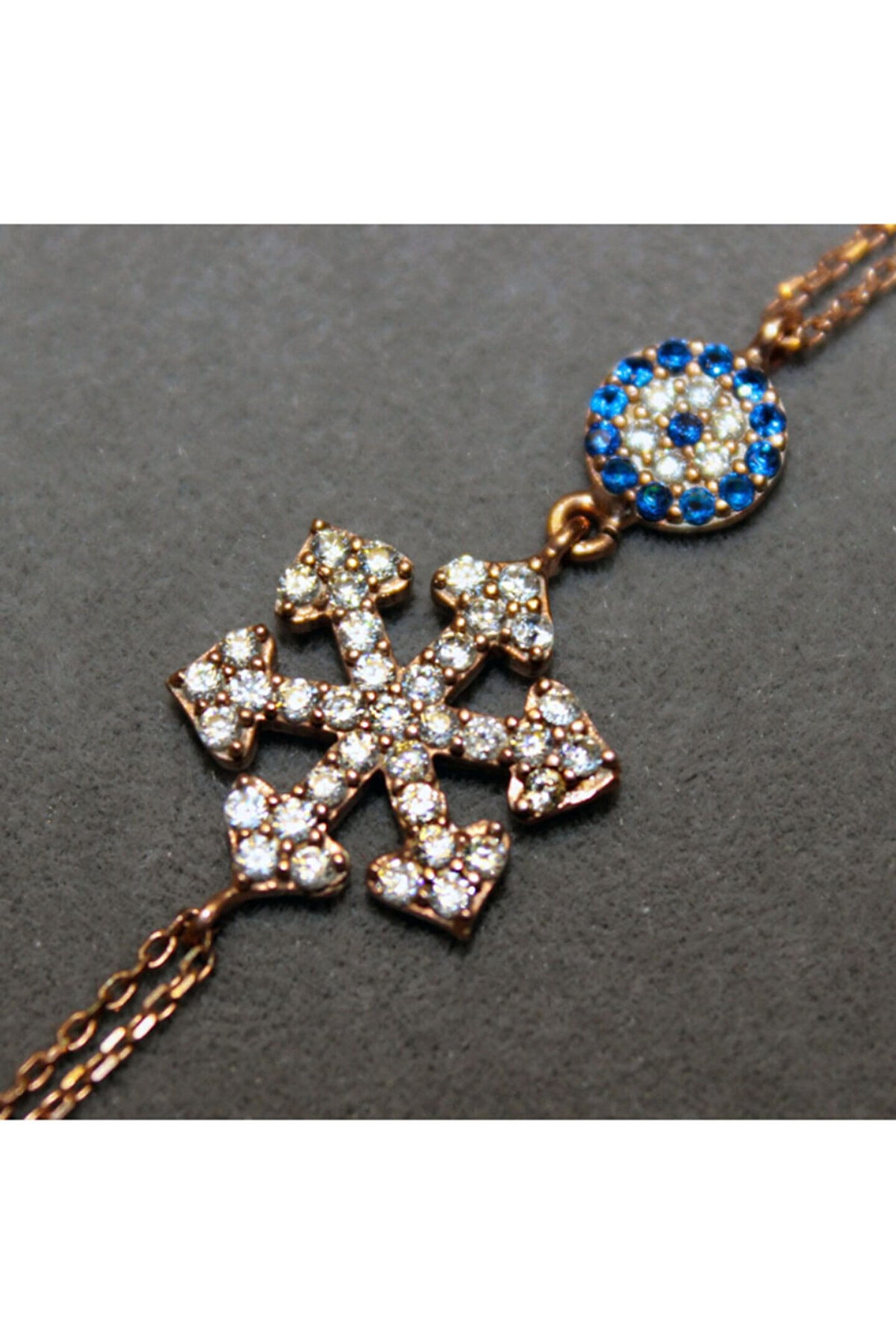 G ÜmüşZirkon taşlı ve nazar boncuğu detaylı rose kar tanesi Bileklik modeli 925 ayar gümüşten ımal edılmıştır. G ÜmüşZirkon taşlı ve nazar boncuğu detaylı rose kar tanesi Bileklik modeli ÜZerinde zirkon taşlar kullanılmıştır. GümüşZirkon taşlı ve nazar boncuğu detaylı rose kar tanesi Bileklik modeli Üzerıne rodyum kaplama yapılmıştır. Rodyum kaplama yapılan gümüş bileklik modellerı parlaklığını uzun süre muhafaza eder ve oksıtlenmesı gecıkır. Gümüş olan zıncır boyu ayarlanabilir15,5-18,5 Cm'dır. GümüşZirkon taşlı ve nazar boncuğu detaylı rose kar tanesi Bileklik modeli%100 El emeğı ıle üretılmıştır. Gümüş ve değerlı taşlar nedenıyle belırtılen ürün ağırlığında ± %5 Sapma olabılmektedır. Ürün hedıye kutusunda gönderılecektır. Zirkon taşının Özellikleri; Mücevheratta kullanılan ve çok tercih edilen taş çeşitlerinden biridir. Zirkon taşı kahverengidir ve ısıtılarak renksiz hale getirilir. Zirkon taş kahverengi, kırmızı ve sarı renginde kendini gösterir. Mücevher olarak kullanılan renklerden en çok renksiz olanı tercih edilir. Zirkon taşının albenisi sadece fiziksel görünümden değil, vücudu rahatlatan zihni kuvvetlendiren duygusal anlamda dengeyi koruyan ve uyumayı kolaylaştırıcı özelliklerinden dolayı da tercih edildiği bilinir. Ayar 925 ayar Net ağırlık 2,62 gram Anti alerji ve kararma önleyici kaplama Rhodıum kaplama Zincir boyutu en uzun 18,5cm en kısa 15,5 cm ayarlanabilir Renk Rose