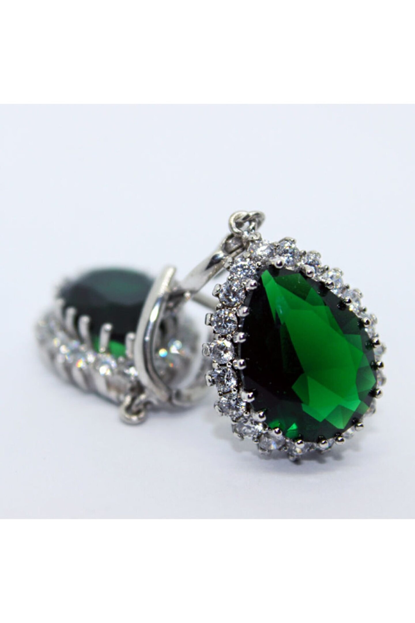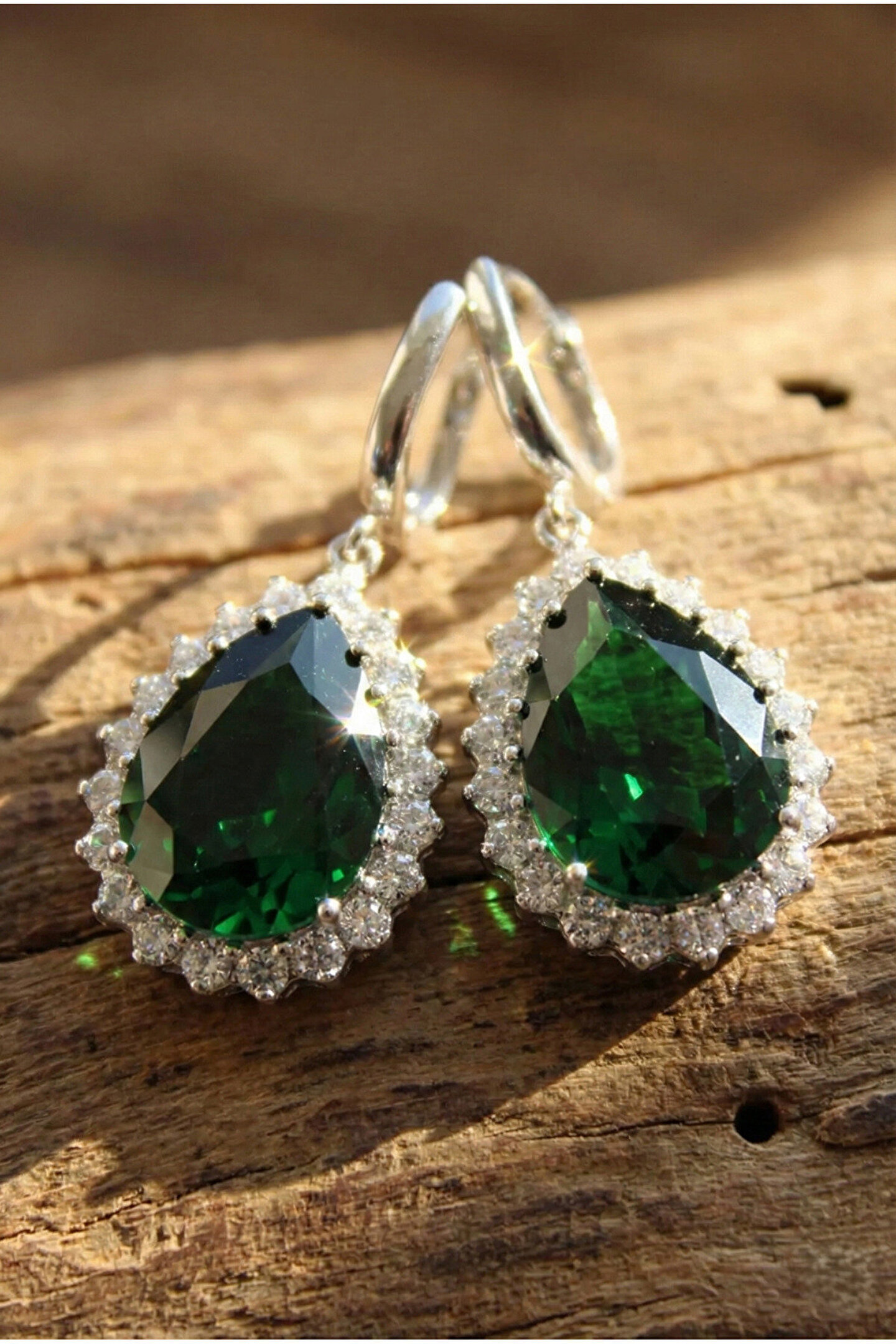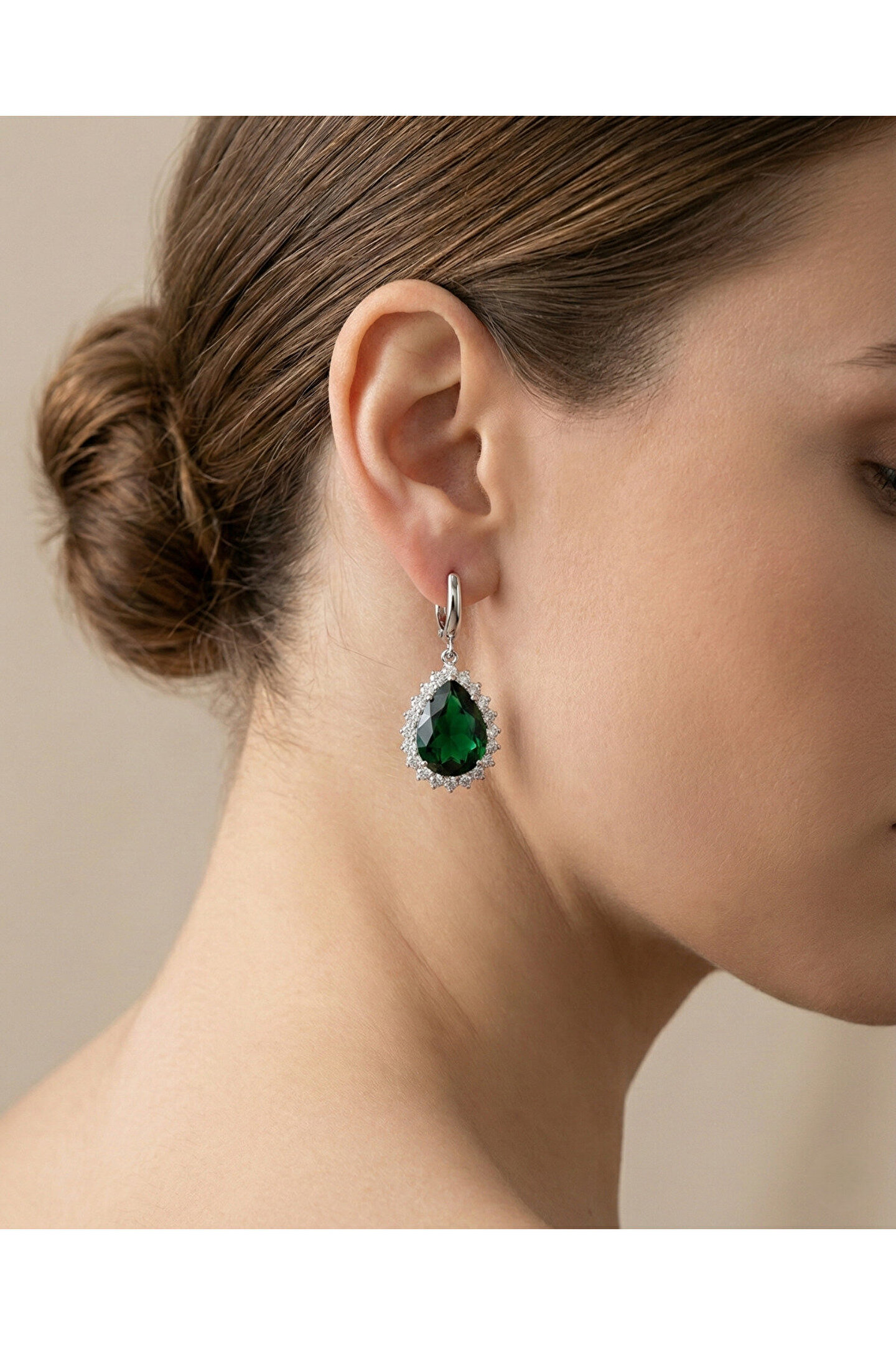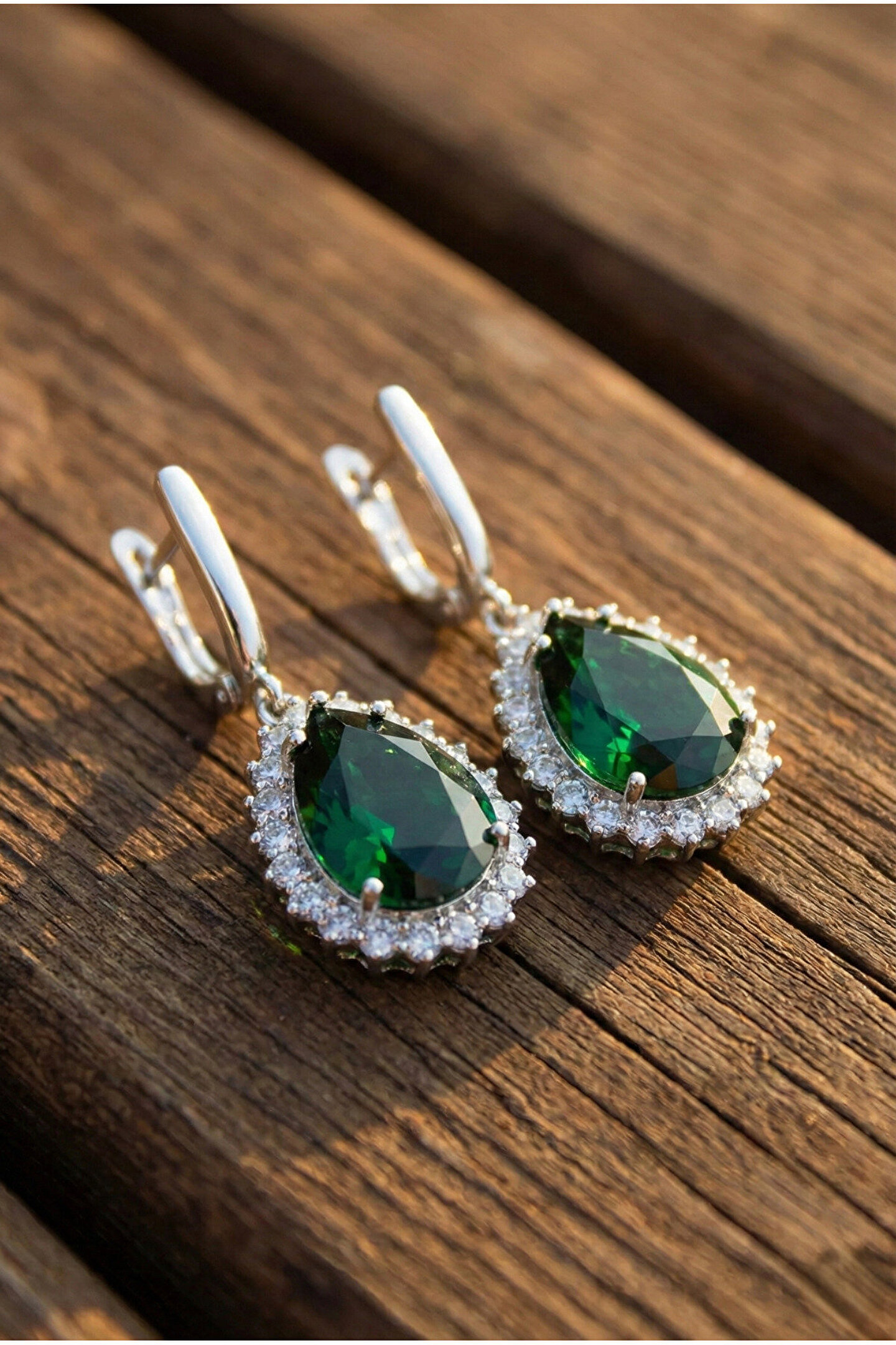 Göz alıcı yeşil zirkon taşlarla süslenmiş, zarif ve modern tasarımıyla dikkat çeken gümüş küpe; Zirkon taşların ışıltısı, her türlü kıyafetle uyum sağlayarak şıklığınızı tamamlar; Gümüş malzeme kullanımı sayesinde hem dayanıklılık hem de estetik görünüm sunar; Günlük kullanım için idealdir; rahatlığı ve şıklığı bir arada sunar;