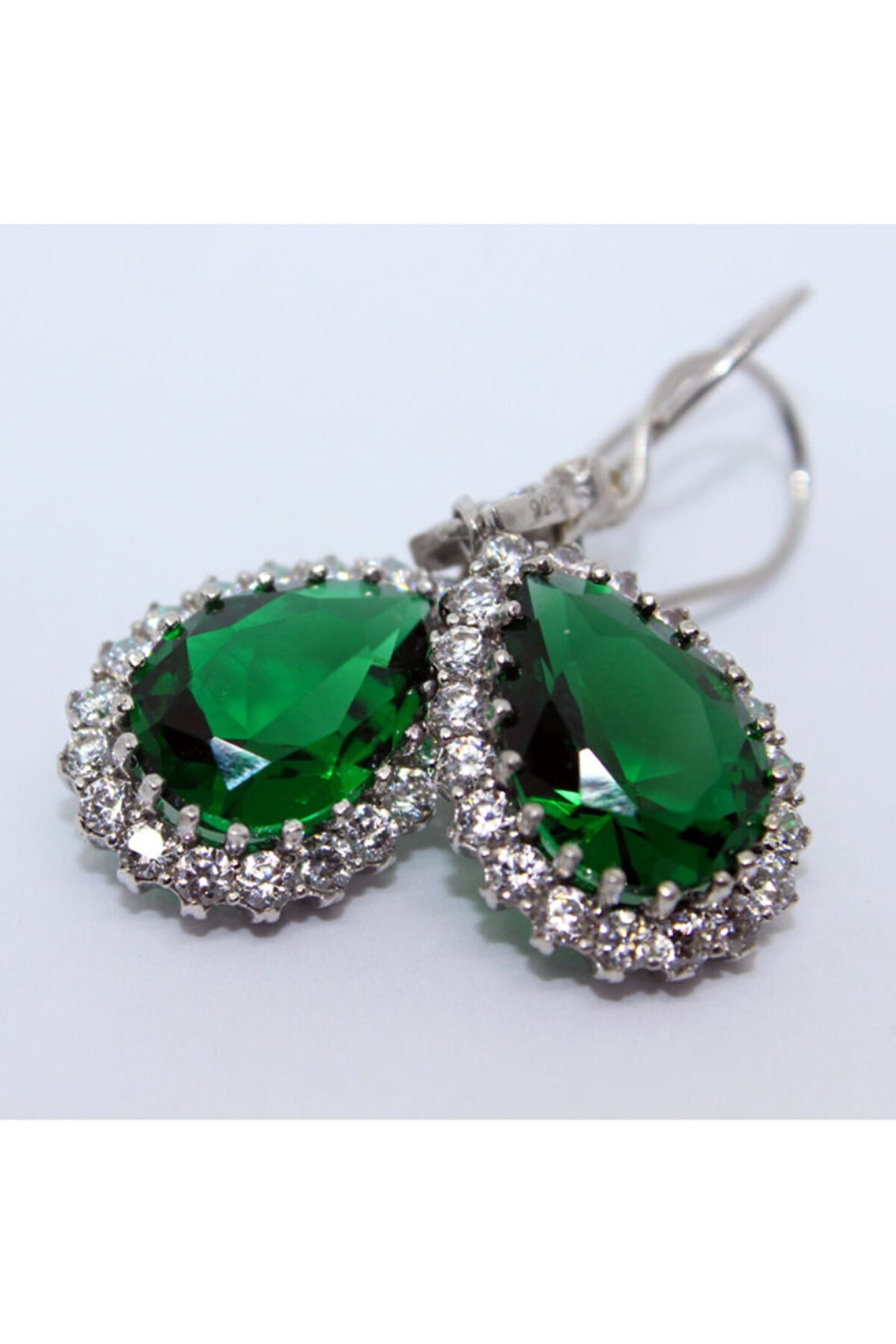 Göz alıcı yeşil zirkon taşlarla süslenmiş, zarif ve modern tasarımıyla dikkat çeken gümüş küpe; Zirkon taşların ışıltısı, her türlü kıyafetle uyum sağlayarak şıklığınızı tamamlar; Gümüş malzeme kullanımı sayesinde hem dayanıklı hem de uzun ömürlü bir aksesuar deneyimi sunar; Klasik ve modern çizgileri bir arada barındıran bu küpe, günlük kullanım için idealdir;