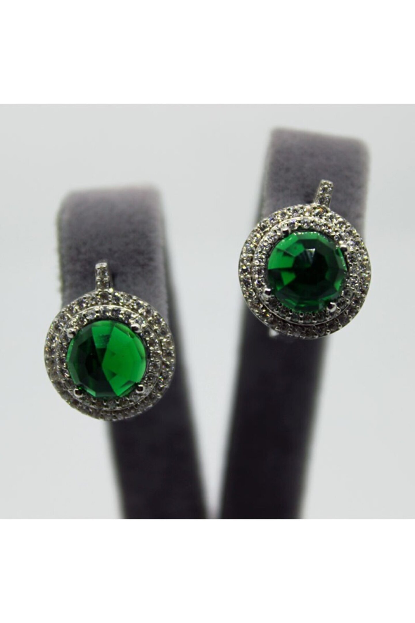 Göğüş Yeşil Taşlı Yuvarlak Küpe