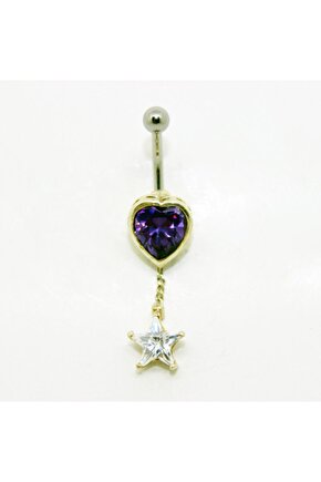 Göğüş Yıldız Sallantılı Mor Kalp Pıercıng