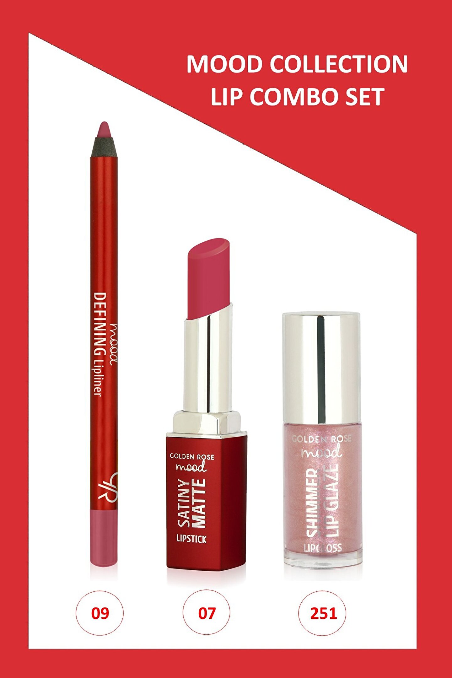 Mood Lip Combo Set, dudak makyajınızı kusursuzlaştırmak için hazırlanmış 3’lü özel bir settir.; Set içeriğinde bulunan Defining Dudak Kalemi No:09, dudak hatlarını belirginleştirerek ruj uygulaması için net bir zemin oluşturur ve akmayı önler.; Satiny Matte Ruj No:07, yoğun pigmentli ve kadifemsi dokusuyla dudaklara mat, zarif ve uzun süre kalıcı bir görünüm kazandırır.; Shimmer Dudak Parlatıcısı No:251 ise ışıltılı yapısıyla dudaklara parlak, hacimli ve pürüzsüz bir etki verir.; Uyumlu tonları sayesinde birlikte kullanıldığında profesyonel bir sonuç sunan bu set, hem günlük makyajda hem de özel davetlerde şıklığınızı tamamlar.