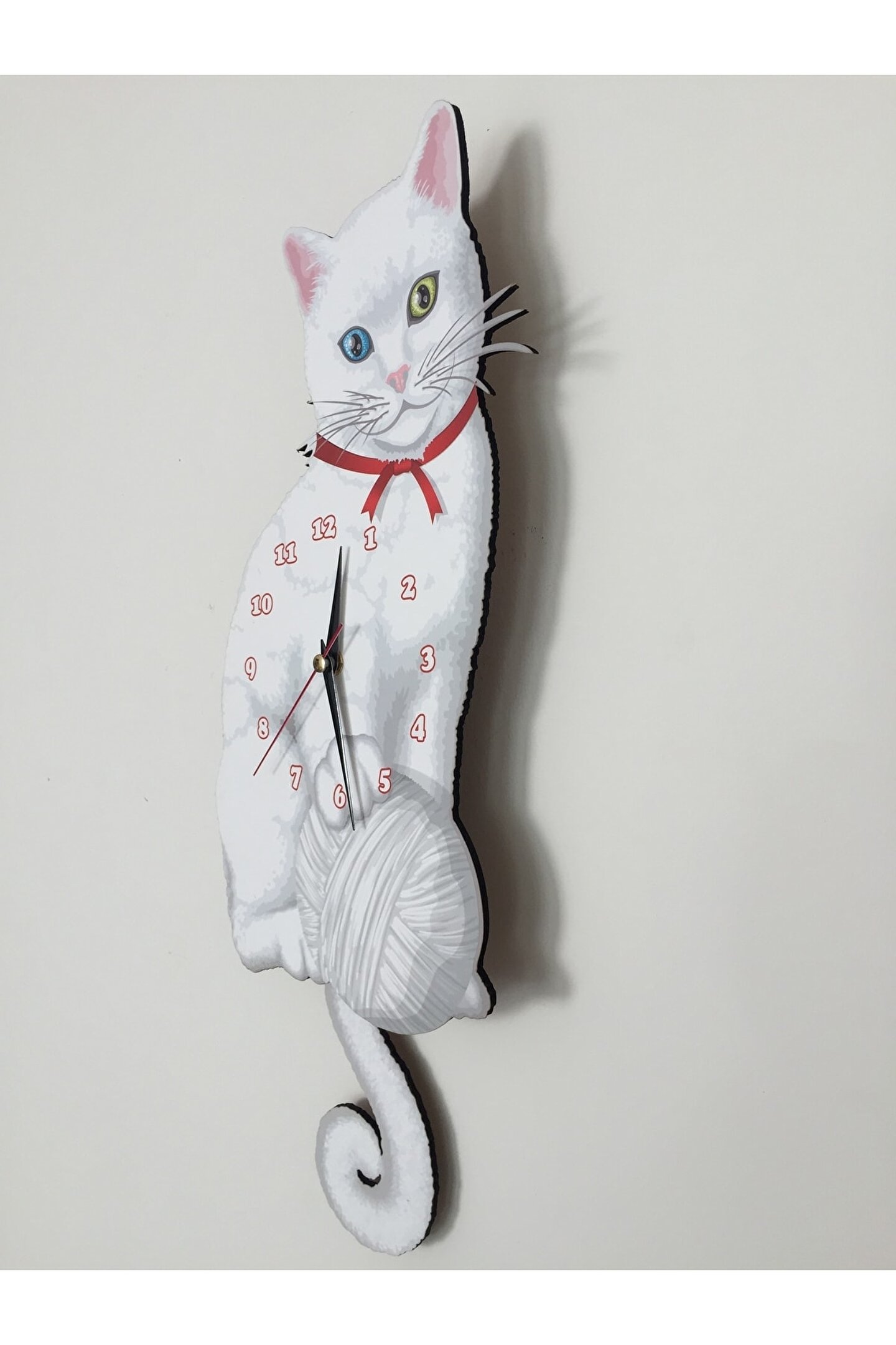 Goodtime Beyaz Kedi Dekoratif Sallanır Sarkaçlı Duvar Saati ; Ürün özellikleri: ; - 1. Kalite Ahşap Mdf Malzemeden üretilmiştir. ; - Ürün tamamen el yapımı (hand made) olup,yüksek kaliteli baskı ile üretilmektedir. ; - 2 adet AA pil ile çalışır. ; - 1 adet pil, saati çalıştırır; diğer pil sarkacı hareket ettirir. ; - Her saniyede “Kuyruk” sağa sola hareketeder. ; - Mekanizması yüksek kaliteli sessiz (quartz)çalışan akar saattir. ; - Saat üzerindeki akrep, yelkovan ve saniye metal malzemedir. ; - Montaj şekli: Duvar çivisi ; - Montaja hazır özel askı aparatı ile bir çivi ve ya vidayla duvara kolayca sabitleyebilirsiniz. ; -Mutfak,oturma odası,çocuk odası,salon ve özel günlerinizde hediye olarak tercih edebileceğiniz dekoratif duvar saatidir. ; Ürün ebatları: ; Sarkaç Dahil Yükseklik: 52 cm ; Genişlik : 20 cm ; Derinlik : 4 cm ; Mdf Kalınlığı: 4 mm ; ; ;