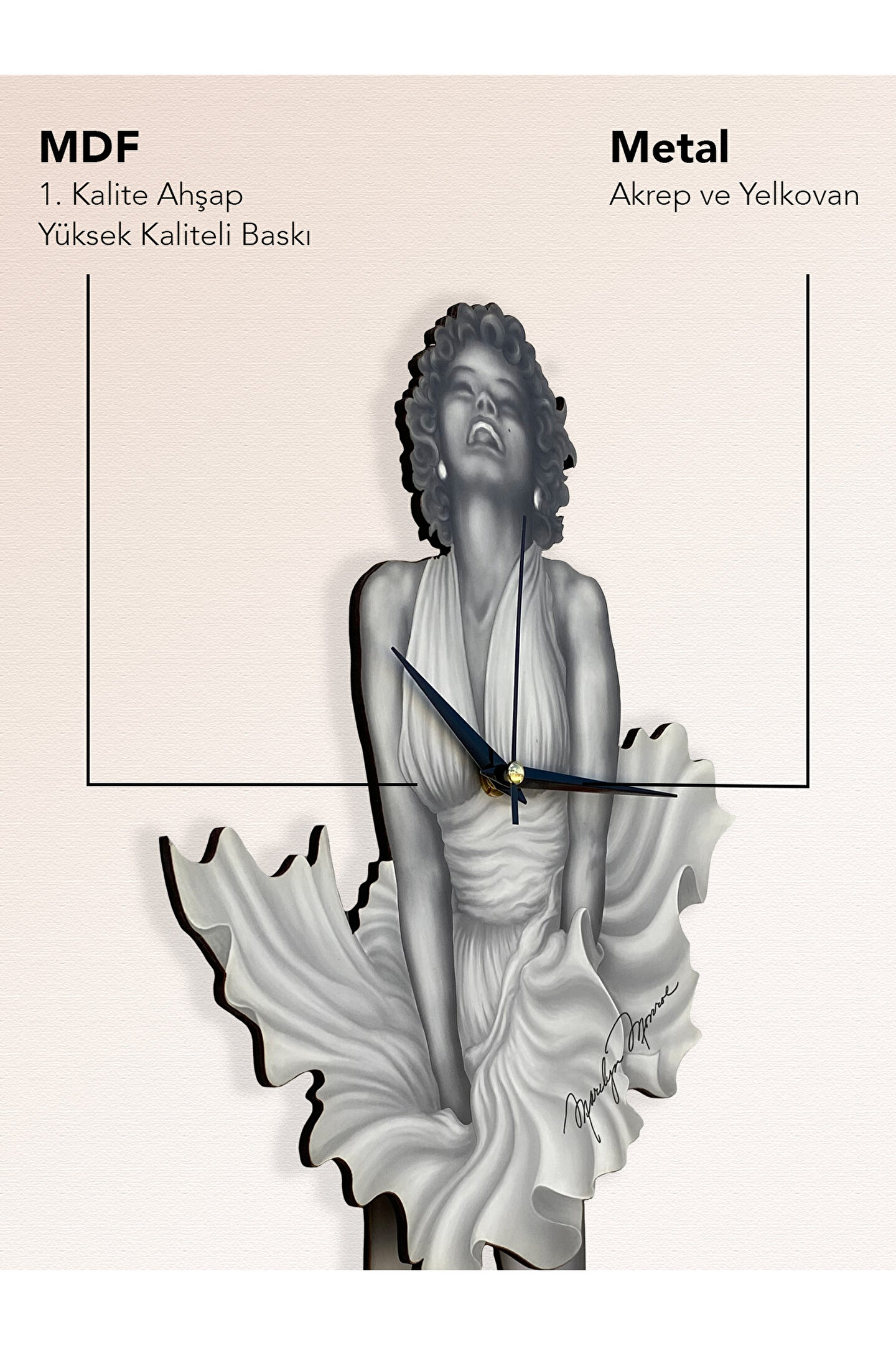 50 x 24 cm boyutlarındaki bu şık duvar saati, mekanınıza zarif bir dokunuş katıyor.; ; Geleneksel tema ve stil anlayışıyla tasarlanmış, zamansız bir dekoratif obje olarak öne çıkıyor.; ; Nötr renk paletiyle her türlü dekorasyona uyum sağlayarak evinizin atmosferini zenginleştiriyor.; ; Beyaz web rengi, saatin modern ve minimalist çizgilerini vurgulayarak dikkat çekici bir kontrast oluşturuyor.; ; Dayanıklı ahşap materyali sayesinde uzun ömürlü kullanım sunarken, aynı zamanda doğal bir estetik sağlıyor.