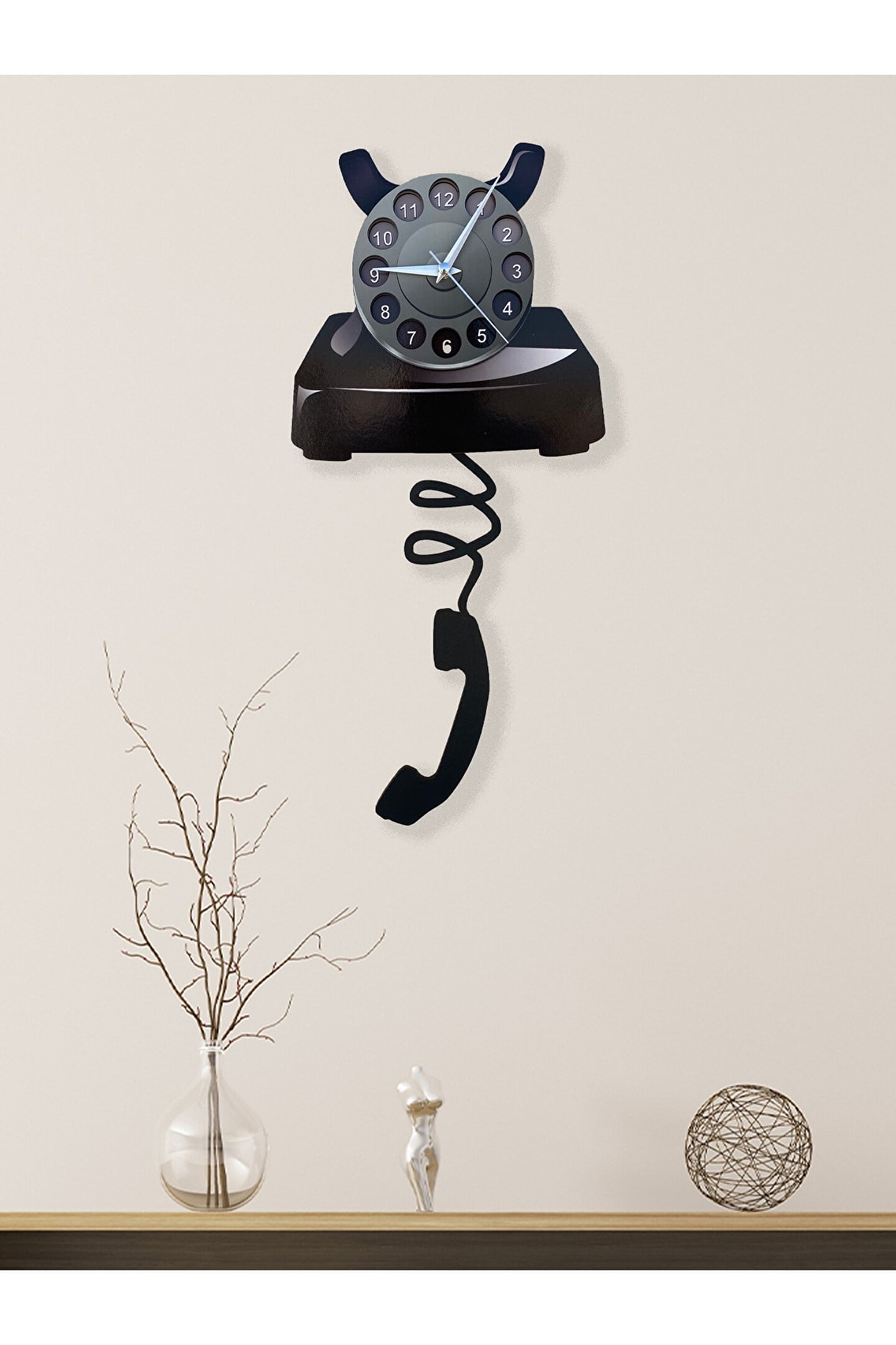 Goodtime Nostaljik Telefon Dekoratif Sarkaçlı Duvar Saati ; Lütfen taklitlerden kaçınınız. Saatin markası "goodtime" dır. ; Ürün özellikleri: ; - 1. Kalite Ahşap Mdf Malzemeden üretilmiştir. ; - Ürün tamamen el yapımı (hand made) olup,yüksek kaliteli baskı ile üretilmektedir. ; - 2 adet AA pil ile çalışır. ; - 1 adet pil, saati çalıştırır; diğer pil sarkacıhareket ettirir. ; - Her saniyede “Telefon Ahizesi” sağa solahareket eder. ; - Mekanizması yüksek kaliteli sessiz (quartz)çalışan akar saattir. ; - Saat üzerindeki akrep, yelkovan ve saniyemetal malzemedir. ; - Montaj şekli: Duvar çivisi ; - Montaja hazır özel askı aparatı ile bir çiviveya vidayla duvara kolayca sabitleyebilirsiniz. ; -Mutfak, oturma odası,çocuk odası,salon ve özel günlerinizde hediye olarak tercih edebileceğiniz dekoratif duvar saatidir. ; Ürün ebatları: ; Sarkaç Dahil Yükseklik: 50 cm ; Genişlik : 24 cm ; Derinlik : 4 cm ;