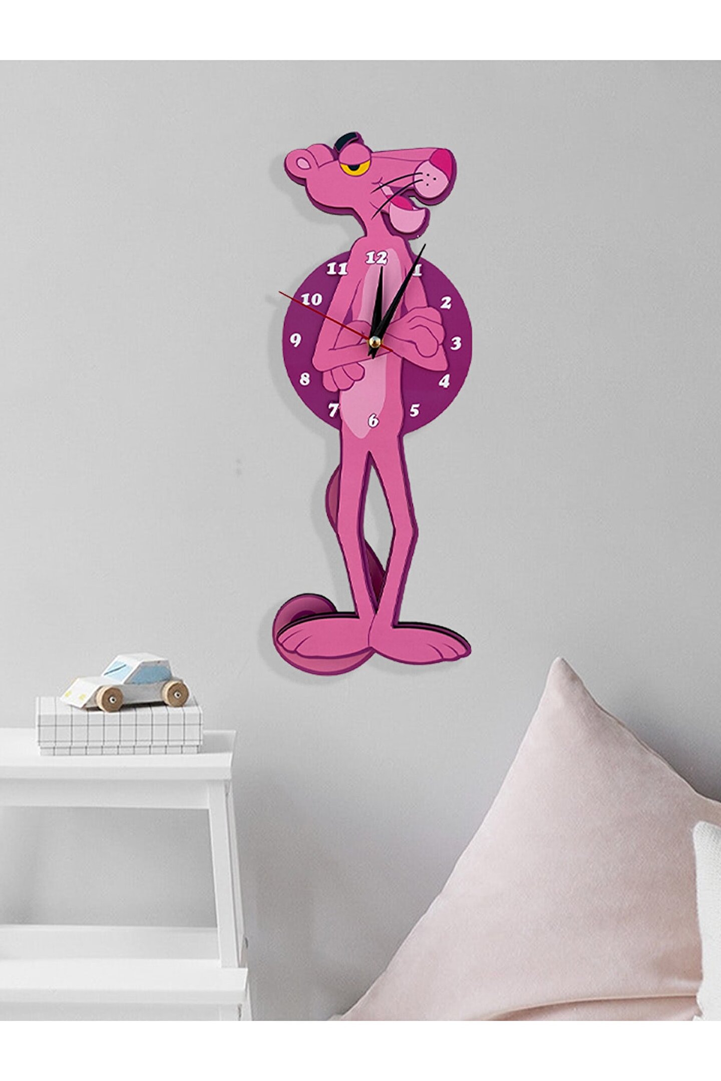 Goodtime Pembe Panter Dekoratif Duvar Saati ; ; Lütfen taklitlerden kaçınınız. Saatin markası "goodtime" dır. ; ; ; Ürün özellikleri: ; - 1. Kalite Ahşap Mdf Malzemeden üretilmiştir. ; - Ürün tamamen el yapımı (hand made) olup,yüksek kaliteli baskı ile üretilmektedir. ; - 2 adet AA pil ile çalışır.- 1 adet pil, saati çalıştırır; diğer pil sarkacıhareket ettirir. ; - Her saniyede “ Kuyruk ” sağa solahareket eder. ; - Mekanizması yüksek kaliteli sessiz (quartz)çalışan akar saattir. ; - Saat üzerindeki akrep, yelkovan ve saniyemetal malzemedir. ; - Montaj şekli: Duvar çivisi ; - Montaja hazır özel askı aparatı ile bir çiviveya vidayla duvara kolayca sabitleyebilirsiniz. ; -Mutfak, oturma odası,çocuk odası,salon ve özel günlerinizde hediye olarak tercih edebileceğiniz dekoratif duvar saatidir. ; Ürün ebatları: ; Sarkaç Dahil Yükseklik: 40 cm ; Genişlik : 14 cm ; Derinlik : 4 cm ; Mdf Kalınlığı: 4 mm ;