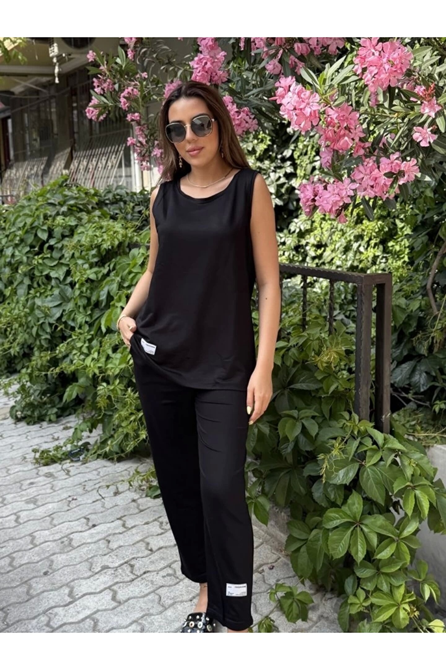 goopall Kadın Askılı Yuvarlak Yaka Viskon Iki Iplik Bluz Ve Eşofman Altı Ikili Takım