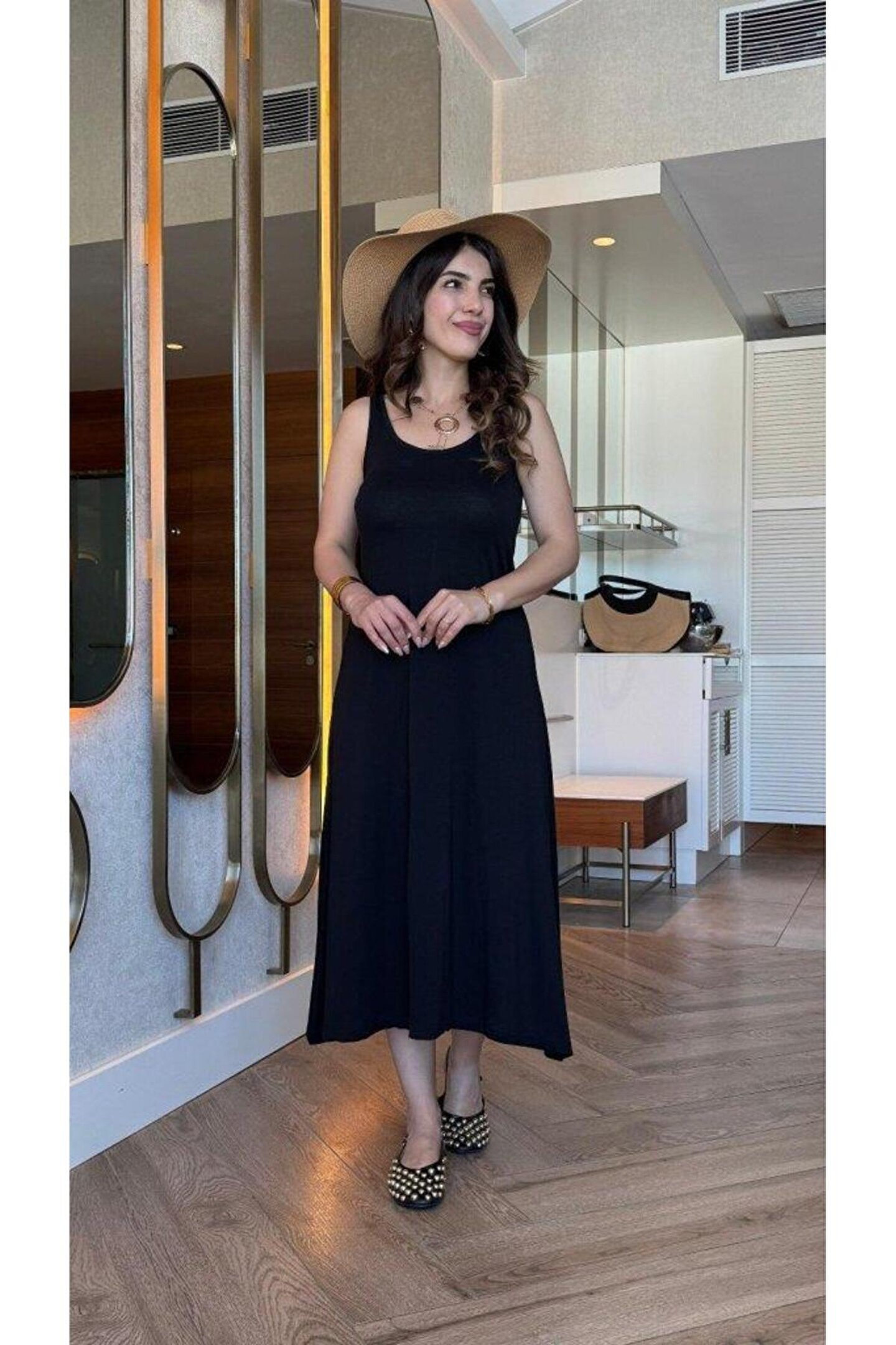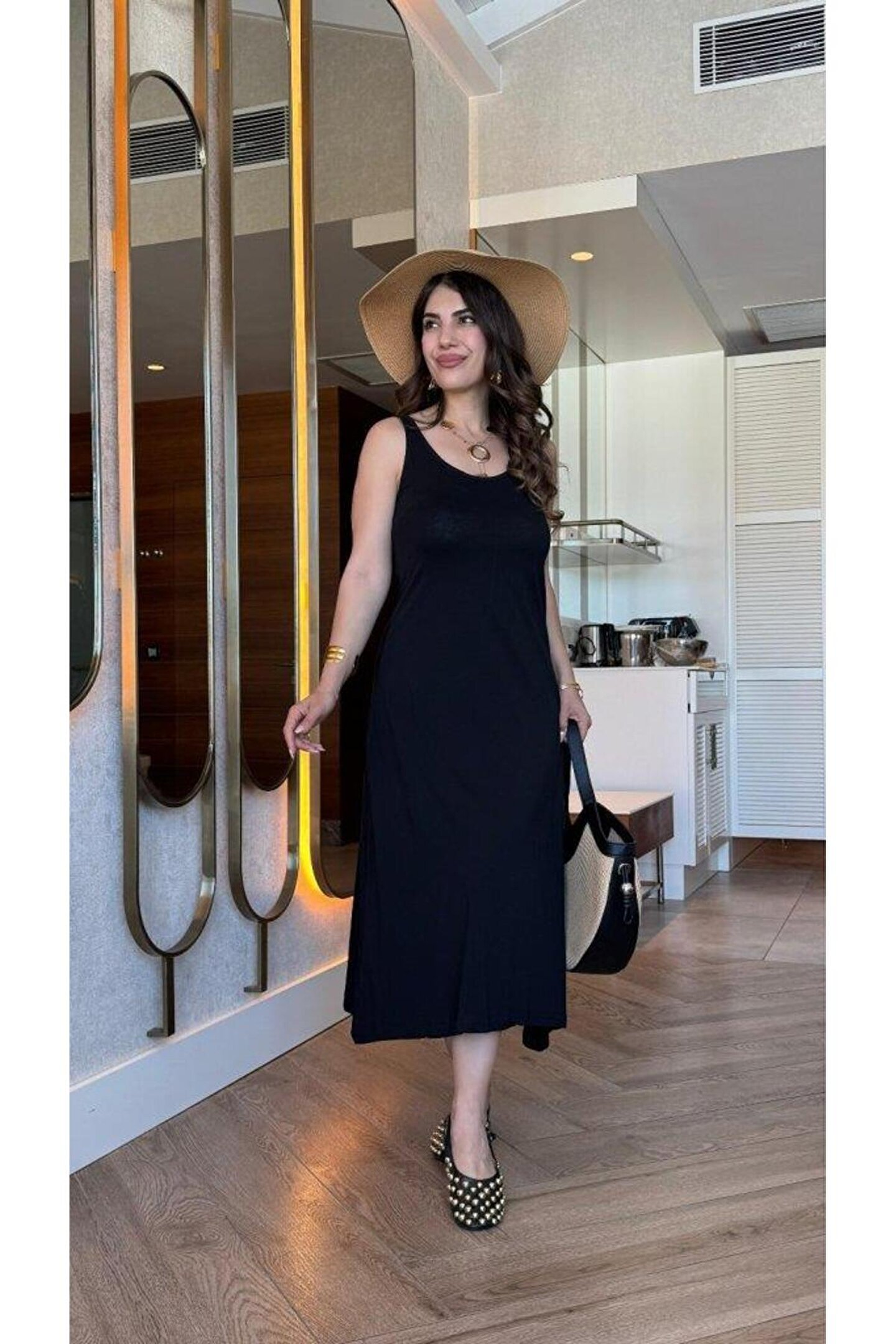 goopall Kadın Askılı Yuvarlak Yakalı Viskon Elbise