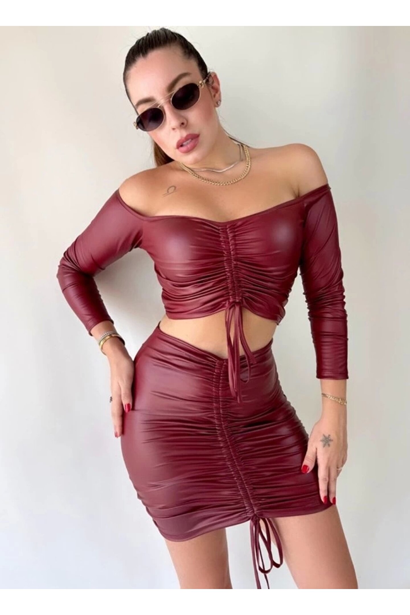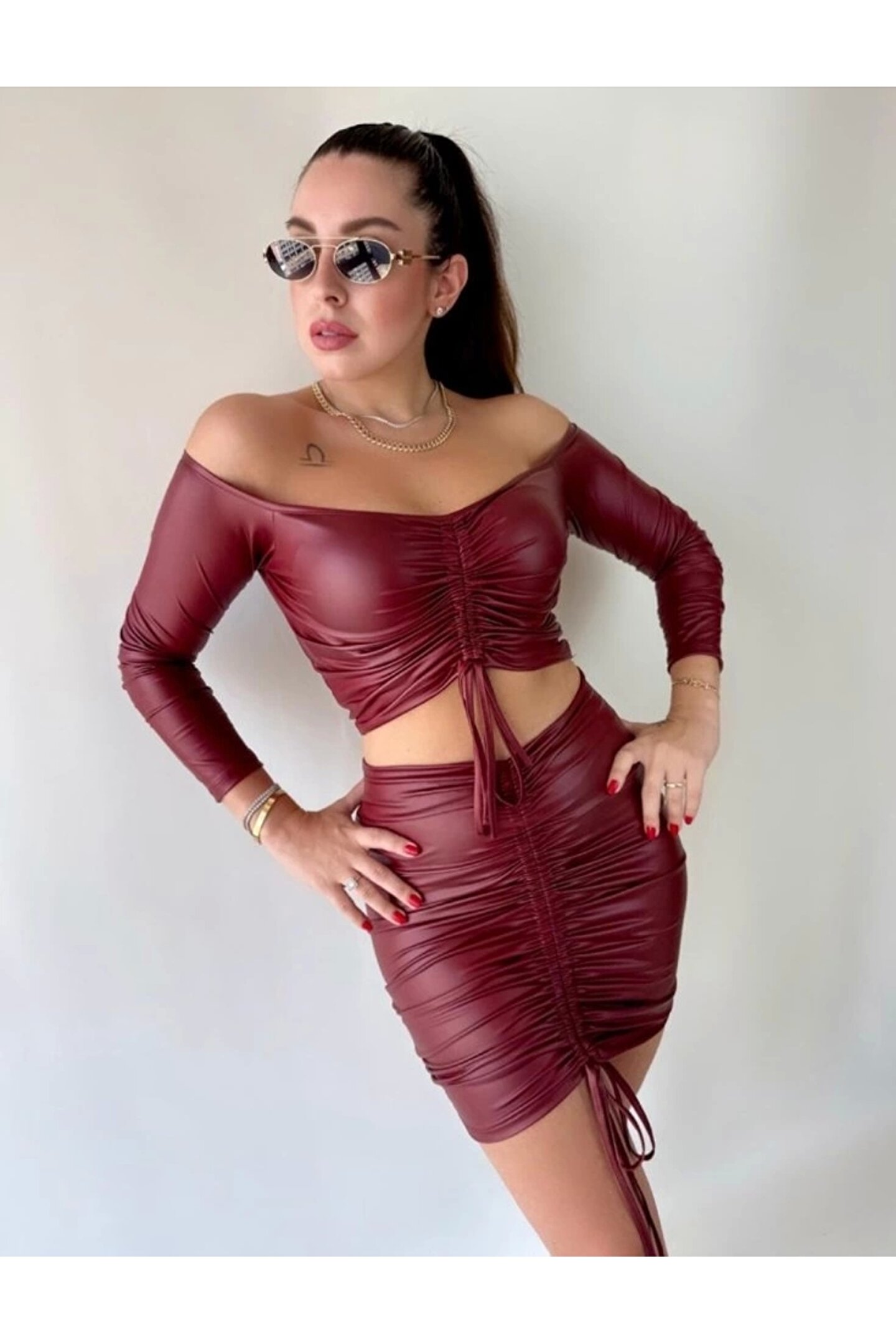 goopall Kadın Büzgülü Deri Etek Takım Fırsat Ürün