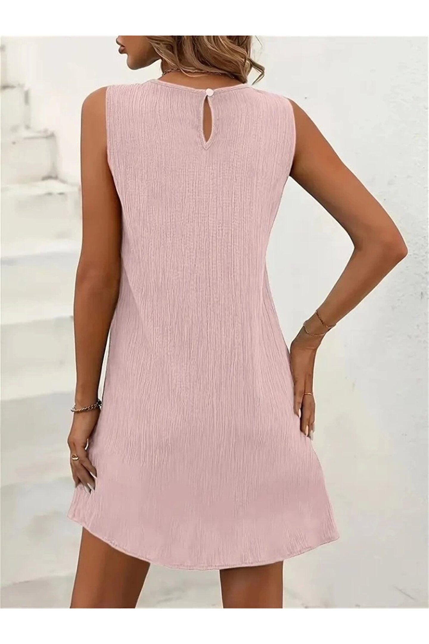Kadın Sıfır Kollu Bisiklet Yaka Bürümcük Elbise