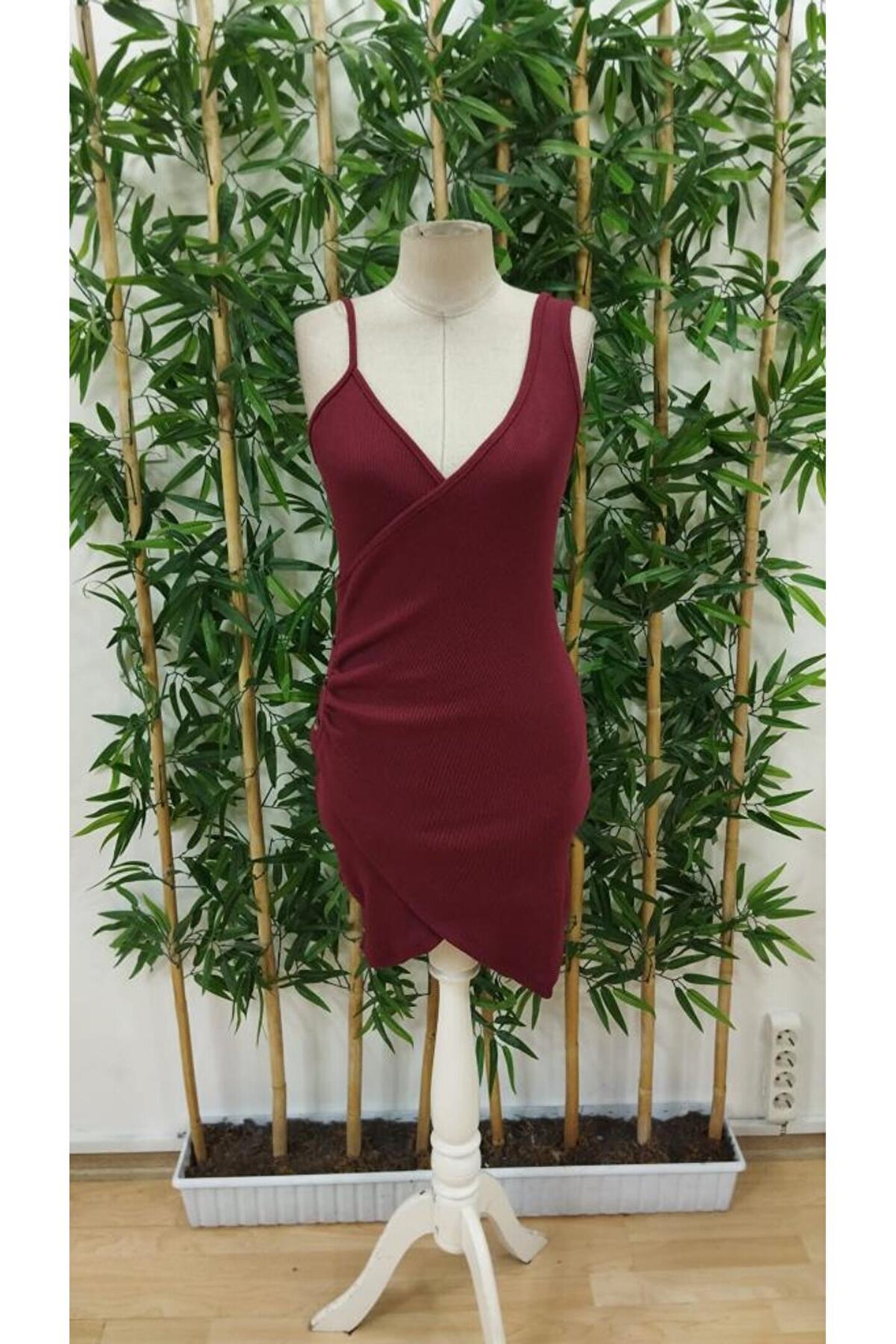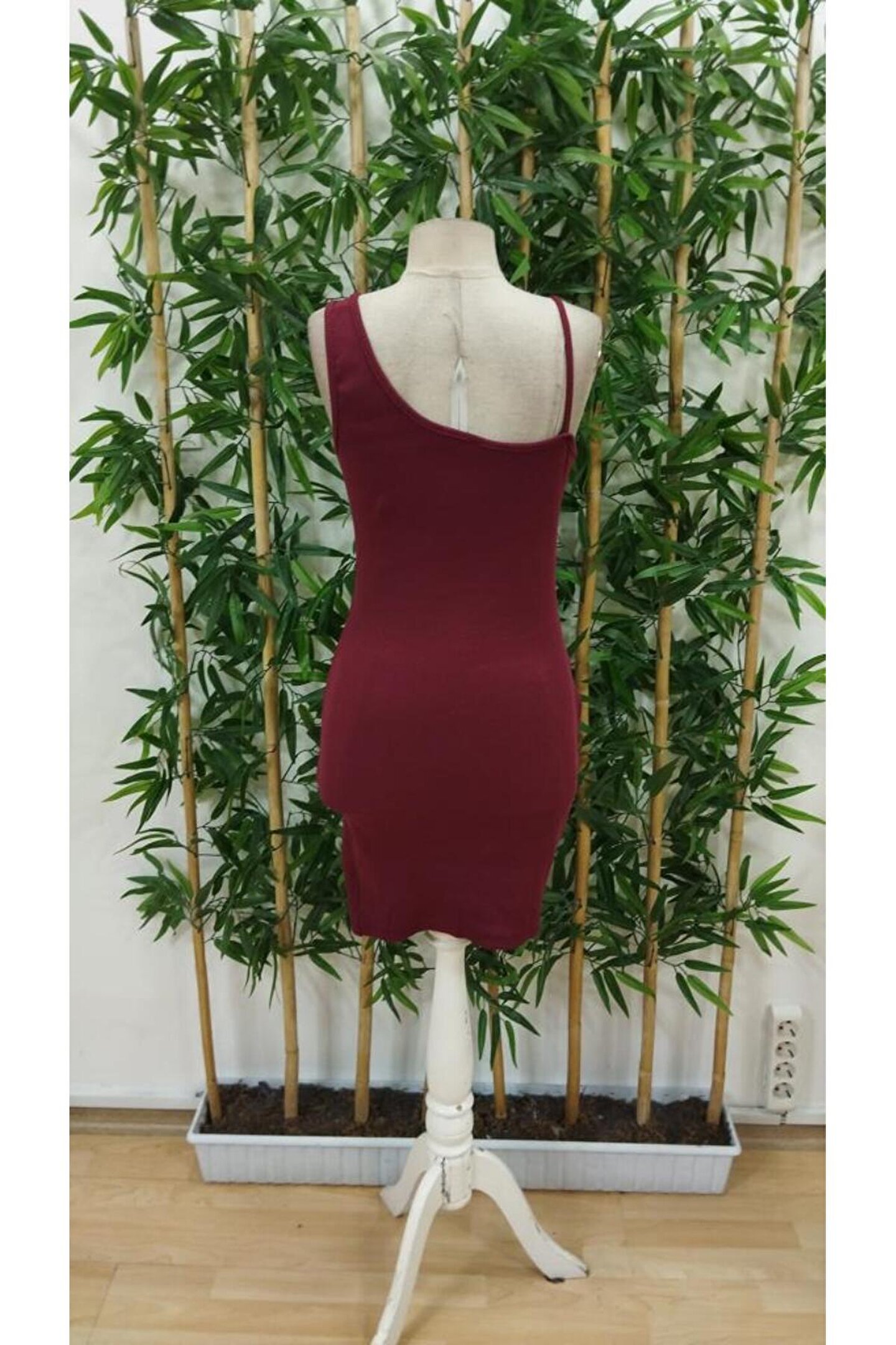 goopall Kadın Tek Omuzu Ip Askılı Kruvaze Yakalı Belden Düğmeli Asimetrik Kesim Detaylı Kaşkorse Elbise