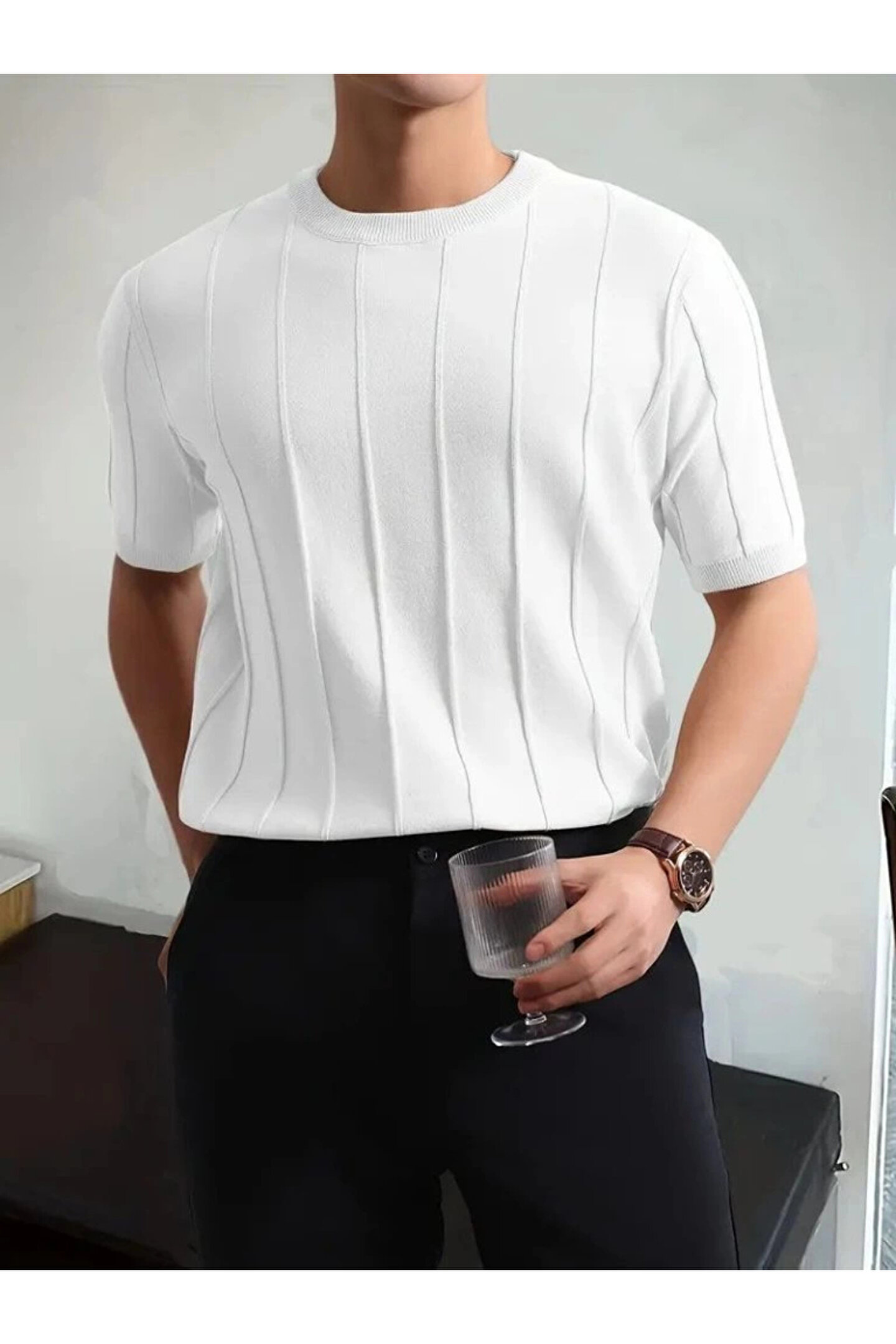 Erkek Kısa Kollu Bisiklet Yaka çizgili Triko Tshirt