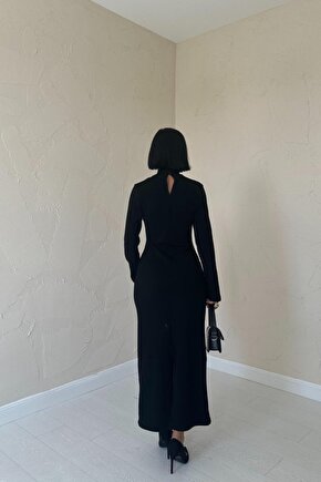 goopall munn collection Siyah Omzu Güllü Düz Elbise