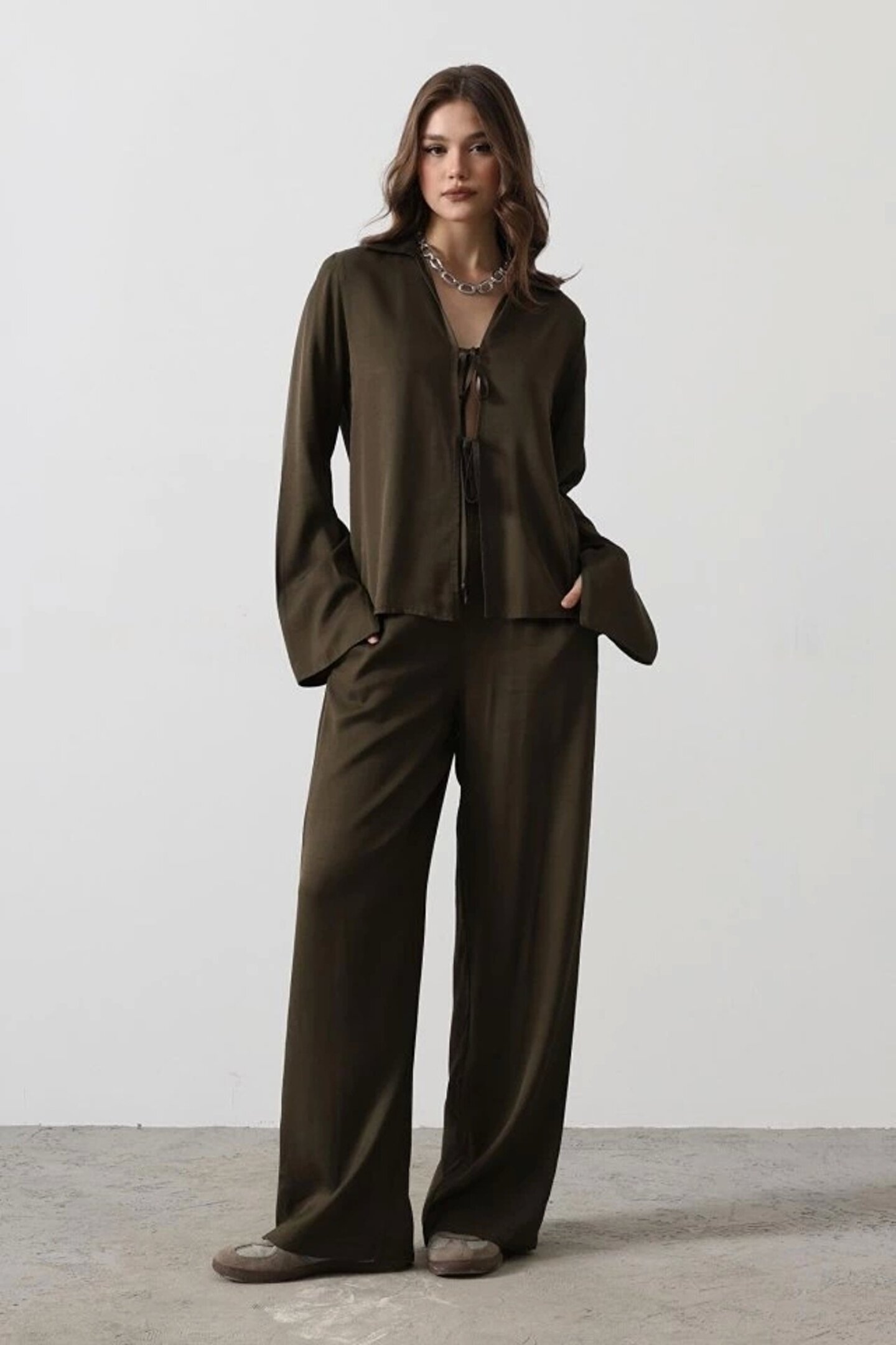 goopall Önden Biyeli Bluz Ve Pantolon Takım Haki