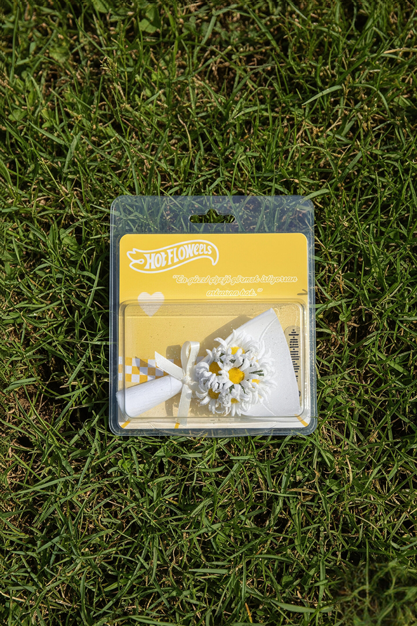 Gorgeous tarafından özel olarak tasarlanan bu koleksiyonluk aksesuar beyaz ve sarı tonlarının hâkim olduğu, özenle hazırlanmış yapay çiçek buketi ve şık süslemeleriyle dikkat çeker.; Ürün, görsel bütünlüğü bozulmadan sunulabilmesi için şeffaf koruma kutusu içerisinde ambalajlanmıştır.; Hem hediye olarak doğrudan sunulabilir hem de dekoratif amaçlı estetik bir tamamlayıcı unsur olarak kullanılabilir.;