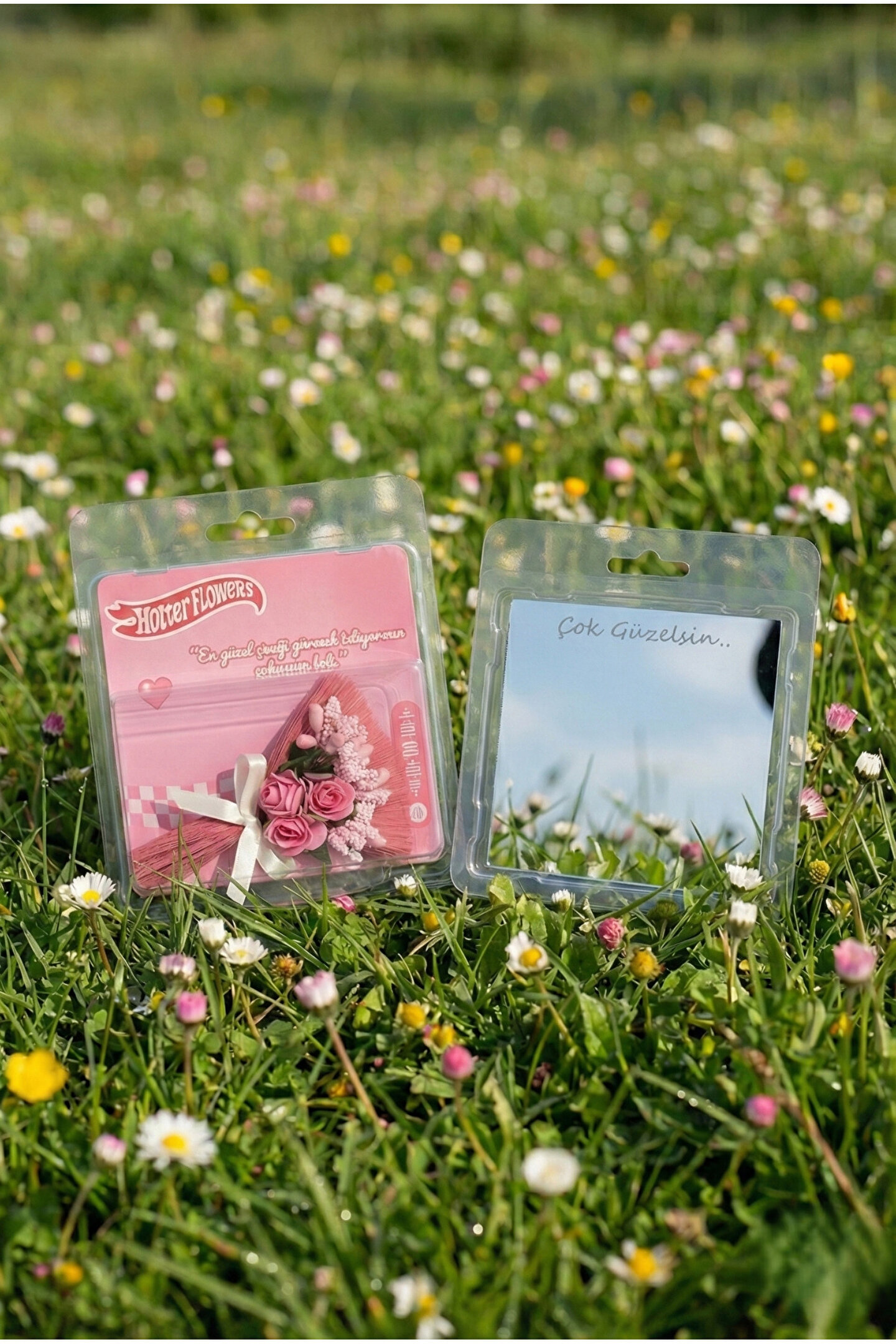Gorgeous tarafından özel olarak tasarlanan bu koleksiyonluk aksesuar pembe tonlarının hâkim olduğu, özenle hazırlanmış yapay çiçek buketi ve şık süslemeleriyle dikkat çeker.; Ürün, görsel bütünlüğü bozulmadan sunulabilmesi için şeffaf koruma kutusu içerisinde ambalajlanmıştır.; Hem hediye olarak doğrudan sunulabilir hem de dekoratif amaçlı estetik bir tamamlayıcı unsur olarak kullanılabilir.