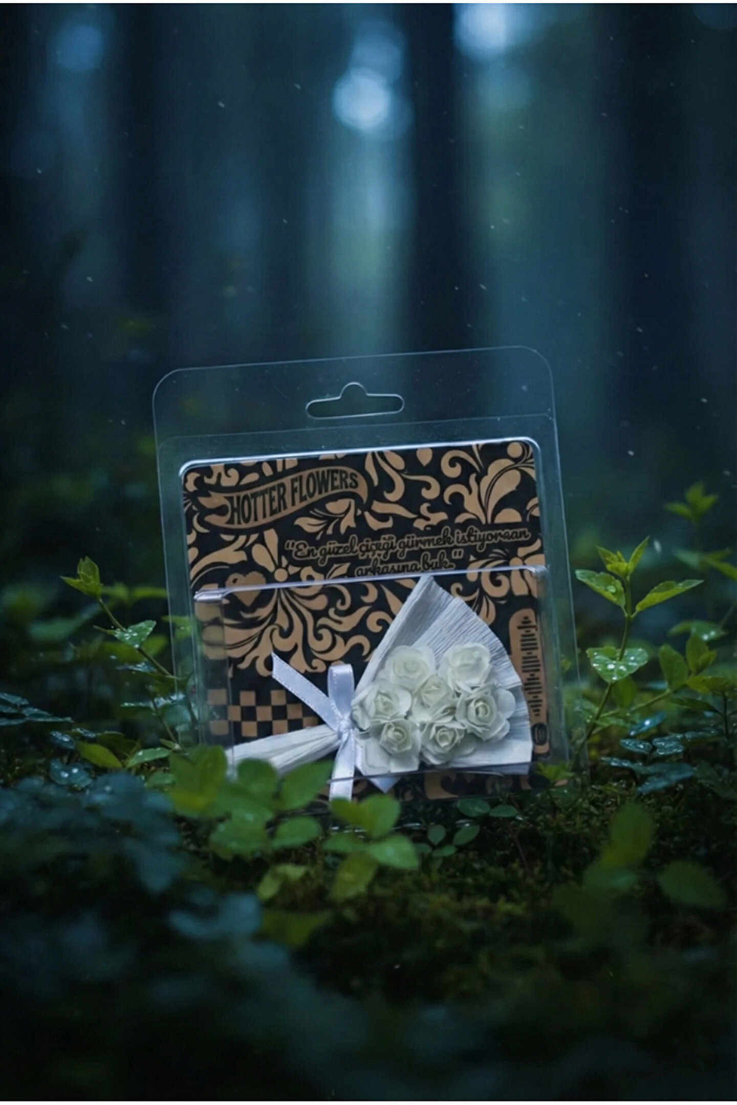 Gorgeous tarafından özel olarak tasarlanan bu koleksiyonluk aksesuar beyaz tonlarının hâkim olduğu, özenle hazırlanmış yapay çiçek buketi ve şık süslemeleriyle dikkat çeker.; Ürün, görsel bütünlüğü bozulmadan sunulabilmesi için şeffaf koruma kutusu içerisinde ambalajlanmıştır.; Hem hediye olarak doğrudan sunulabilir hem de dekoratif amaçlı estetik bir tamamlayıcı unsur olarak kullanılabilir.