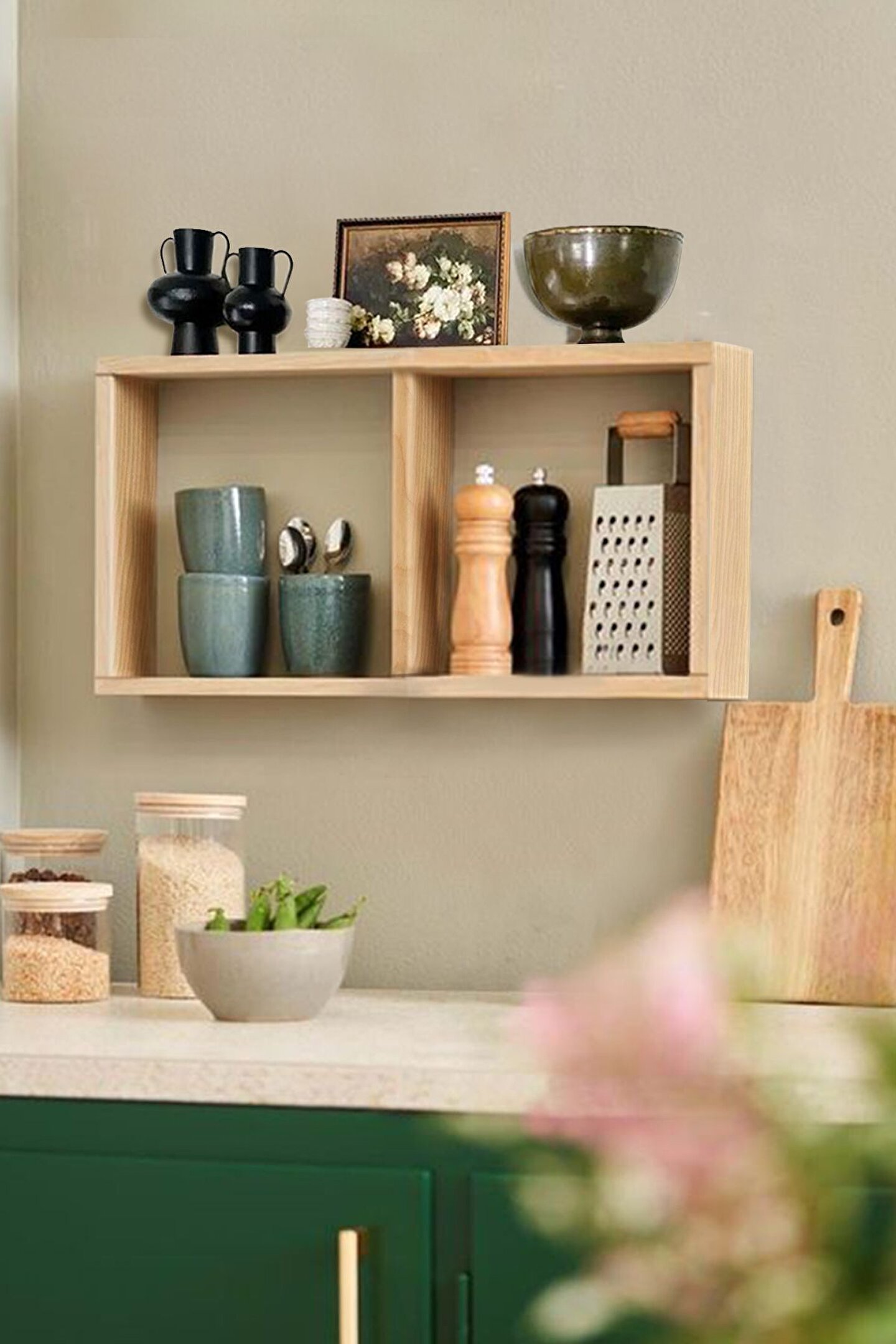 Ahşap Duvar Rafı Mutfak Rafı Banyo Rafı Salon Rafı Kitaplık 2li