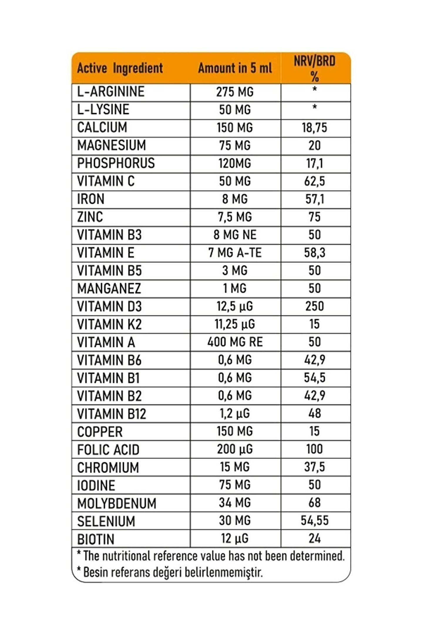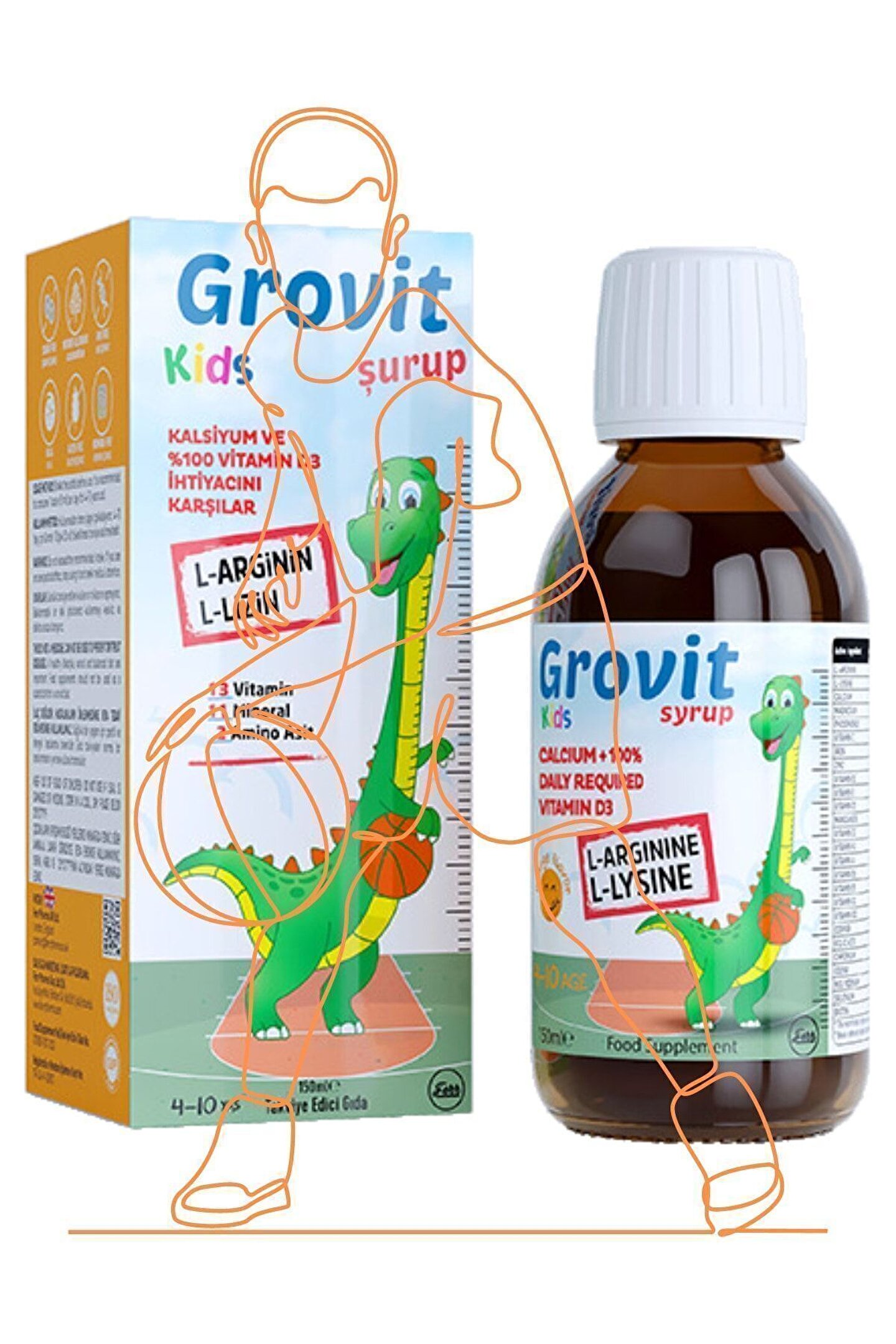 Grovit Kids Multivitamin Şurup 150 ml Boy Uzamasına Yardımcı Ve Iştah Düzenleyici Grovit kids multivitamin, multiaminoasit, multimineral içerikli 150 ml şurup formunda gıda takviyesidir. ; Boy uzamasına ve zihinsel gelişime destek olarak çocukların günlük vitamin ve mineral ihtiyacını karşılamaya yardımcı olur. ; Grovit şurup içerdiği kalsiyum, magnezyum, d vitamini, k2 vitamini , l-Arginin ve l-Lizinsayesinde boy uzamasını destekler. ; Çocuklarda normal zihinsel-Bilişsel gelişime katkıda bulunan demir içerir. ; Uzman doktor önerisiyle boy uzaması desteği için çocuklara akşam yemekten hemen önce verilebilir. ; Iştah artırımına destek vitamin ve minerallerle zenginleştirilmiş grovit kids şurup, çocukların iştah artırımına destek olur. ; Doktor önerisiyle iştah artırımı desteği için çocuklarınıza sabah ya da öğle saatlerinde yemekten önce verebilirsiniz. ; Çocuk gelişimine destek içeriğindeki mineraller ile ilgili yapılan klinik çalışmalara göre 5 yaş altı ve üstü çocukların zihinsel gelişimini, iştah artmasını ve boy uzamasını destekler. ; Grovit kids hem yağda hem de suda çözünen vitaminlerin bir karışımını içerir. ; Çoğu beslenme uzmanı ve çocuk doktoru tarafından yiyeceklerle birlikte multivitamin alınmasını önerilmektedir. ; Yemekten hemen önce almak idealdir. ; Sabah, öğle ya da akşam alabilir. ; Ayrıca mineraller, vitaminler ve aminoasitler çocukların kahvaltı sırasında yiyeceklerden aldıkları diğer besin maddelerini vücudun emmesine yardımcı olur. ; Güvenli kullanım alkol, gluten, aspartam ve paraben içermez. ; Etken maddeler mevzuata uygundur. ; Kullanım şekli hekim önerisiyle bir ölçek alınabilir. ; İçerik:Deionized water, calcium salts of orthophosphoric acid, l-Arginine, calcium oxide, magnesium oxide, natural orange flavor, glycerol(e422), citric acid(e 330), xanthan gum(e415), l-Lysine, l-Ascorbic acid, ferrous fumarate, zinc sulfate monohydrate, nicotinamide, d-Alpha-Tocopherol, sodium benzoate(e211), potassium sorbate(e202), d-Pantothenate calcium, manganese sulfate, cholecalciferol, deionized water(carrier), vitamin d3, menaquinone 7, deionized water (carrier), vitamin k2, suclarose(e 955), retinyl palmitate, pyridoxine hydrochloride, thiamine hydrochloride, riboflavin, copper sulfate, pteroylmonoglutamic acid, chromium picolinate, potassium iodide, sodium molybdate (molybdenum vı), sodium selenite, d-Biotin, methylcobalamin.;