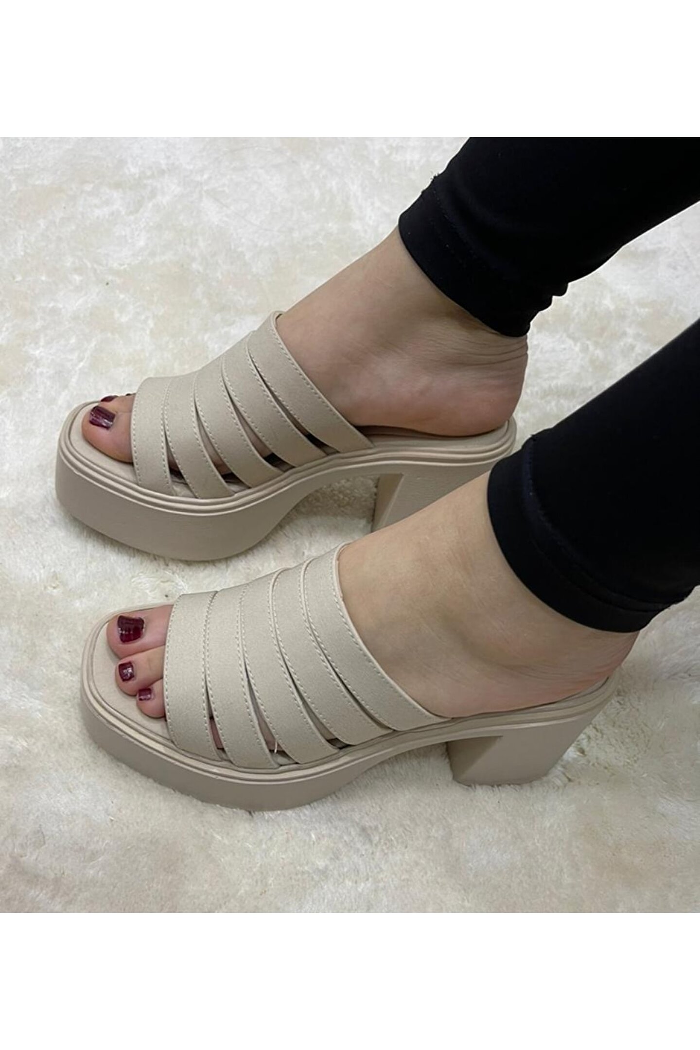 Guja Kadın Yazlık Platform Kalın Topuk Çizgi Bant Modelli Terlik