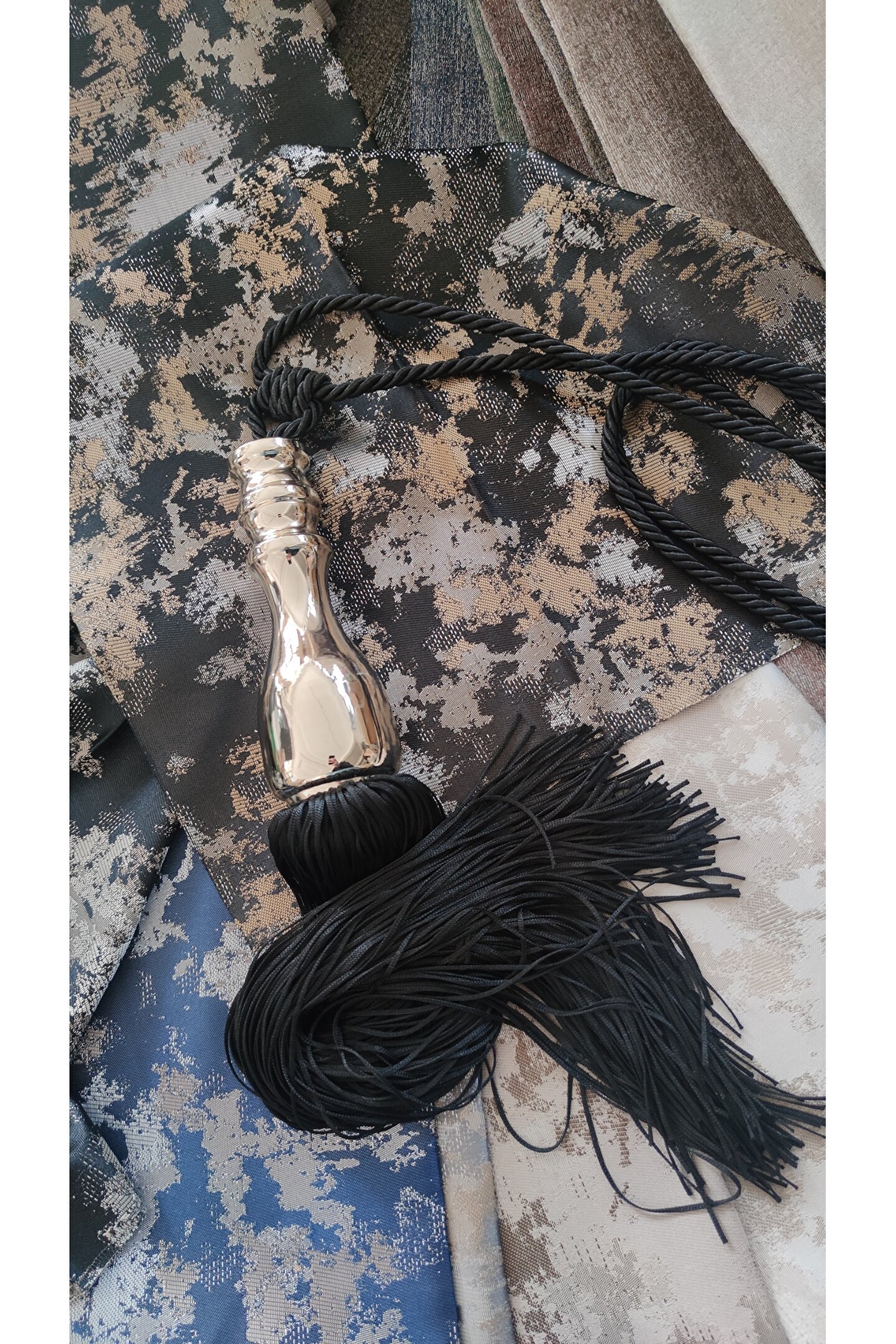 Ürünümüzün ortakukasi metal olup gümüş rengindedir. ; Kordon ve saçaklar siyah renktedir. ; Kordon boyu 3 MT alt saçak boyu 50 cm dir. ; Kolayca korneje takılabilen pratik bir üründür. ; Ürün fiyatı 2 adet için geçerlidir.;