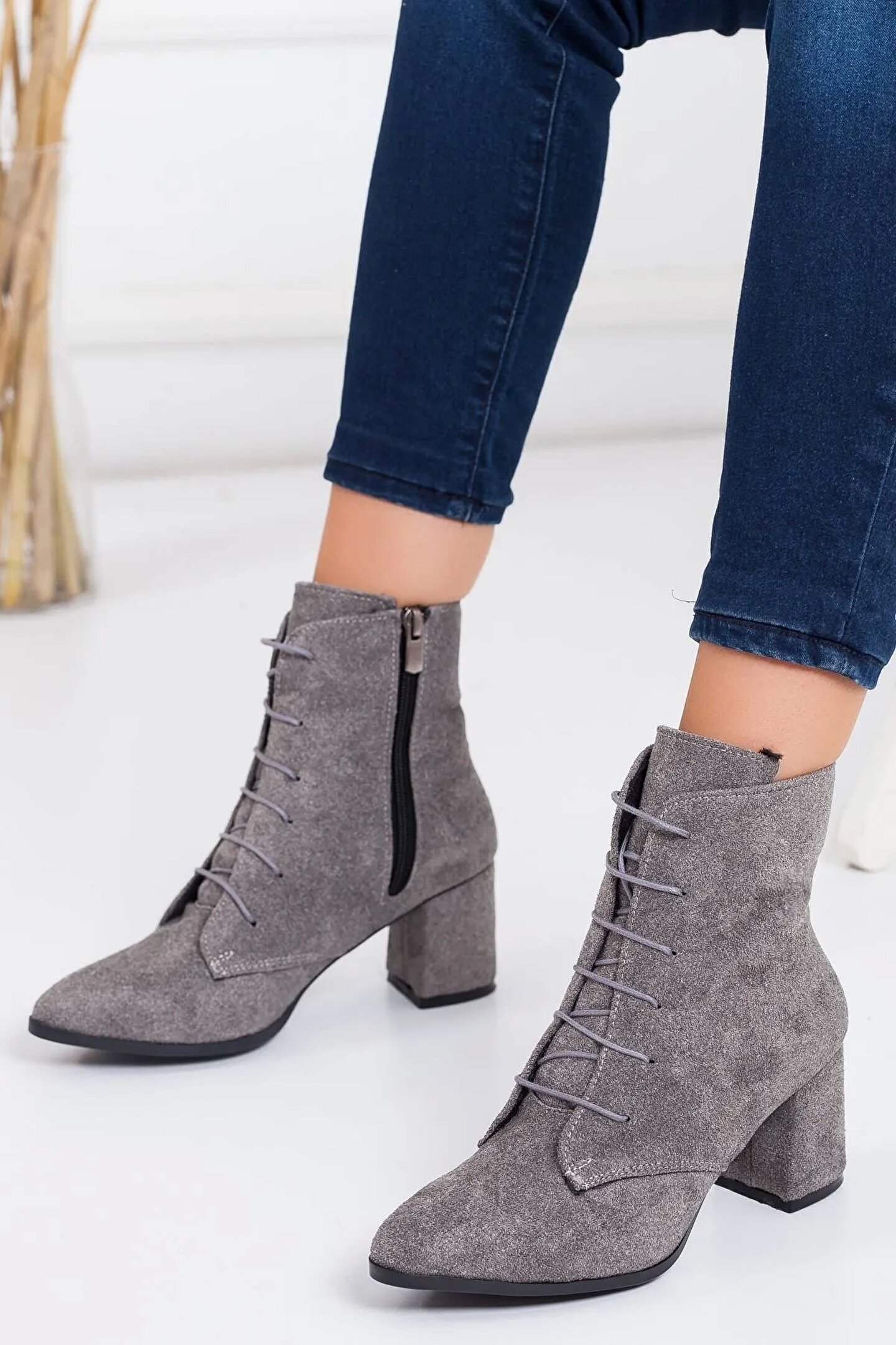 GULT Gri Süet Bot, Kadın Bağcıklı Bot & Bootie