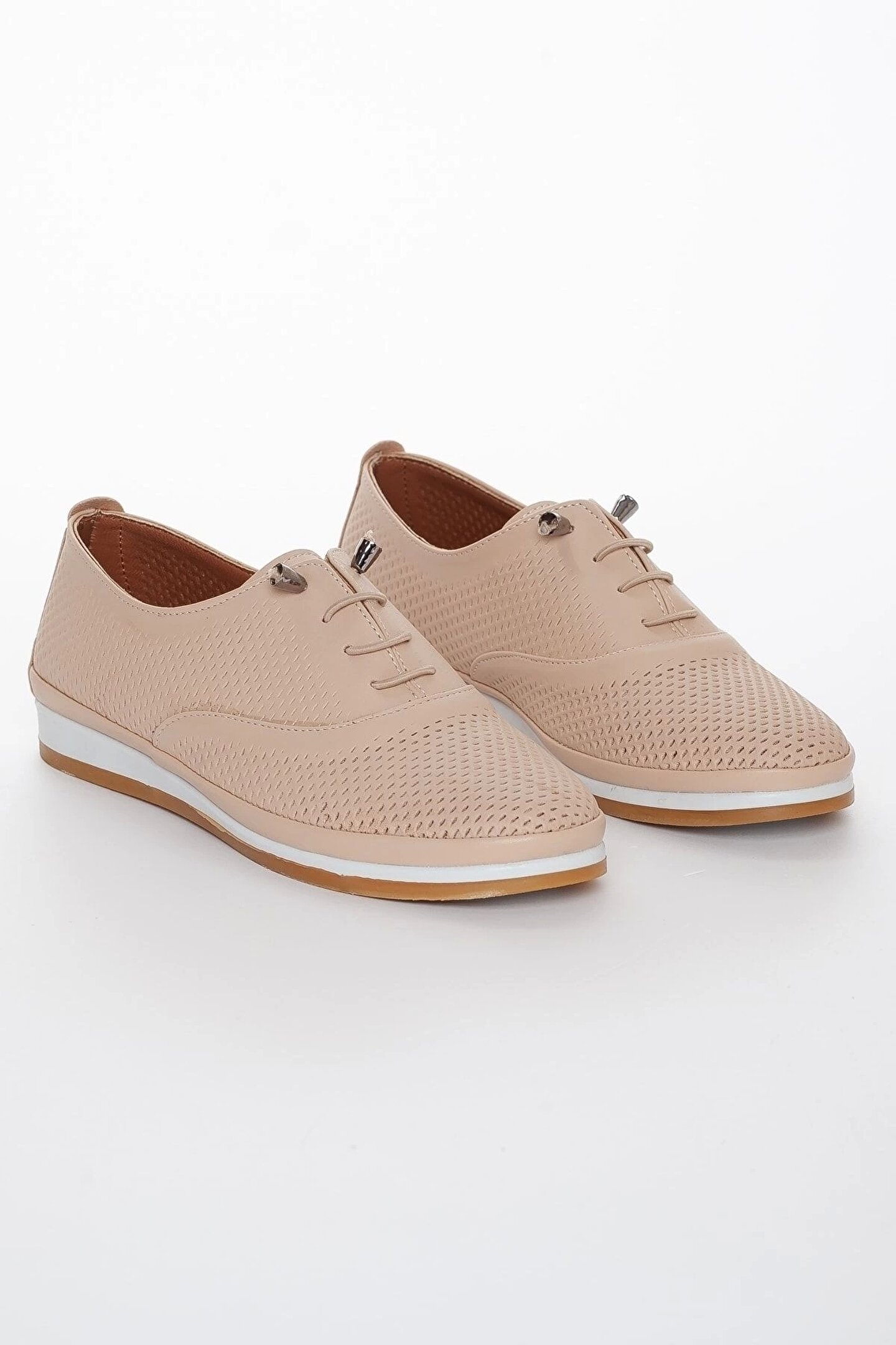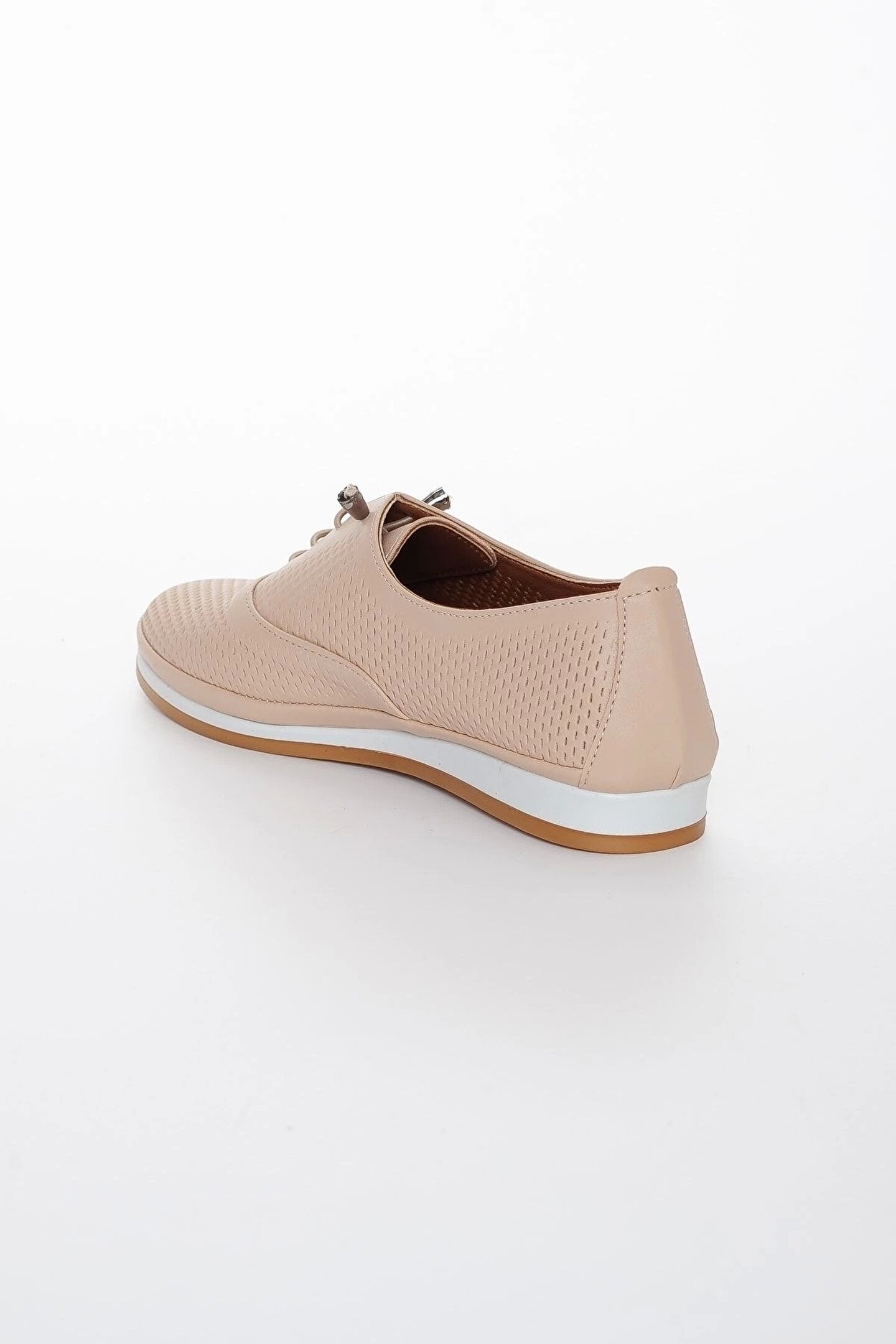 GULT Deri Kadın Günlük Ayakkabı Bağcıklı Ten Lazer Işlemeli
