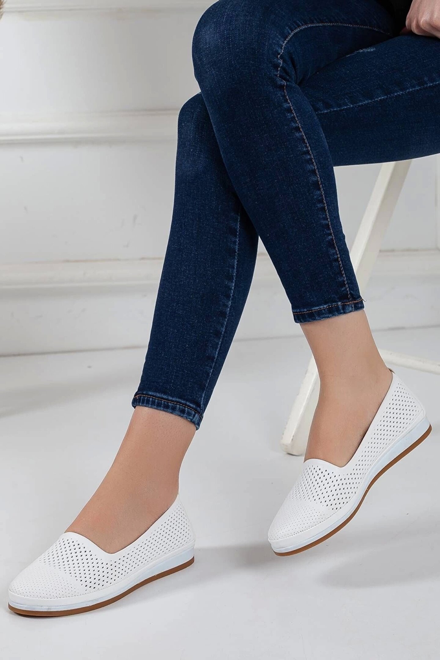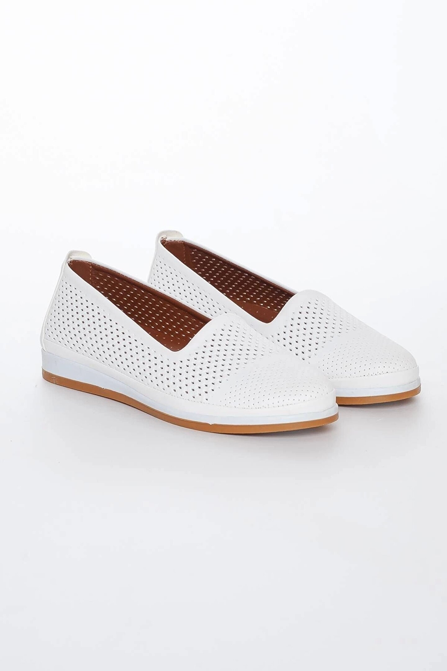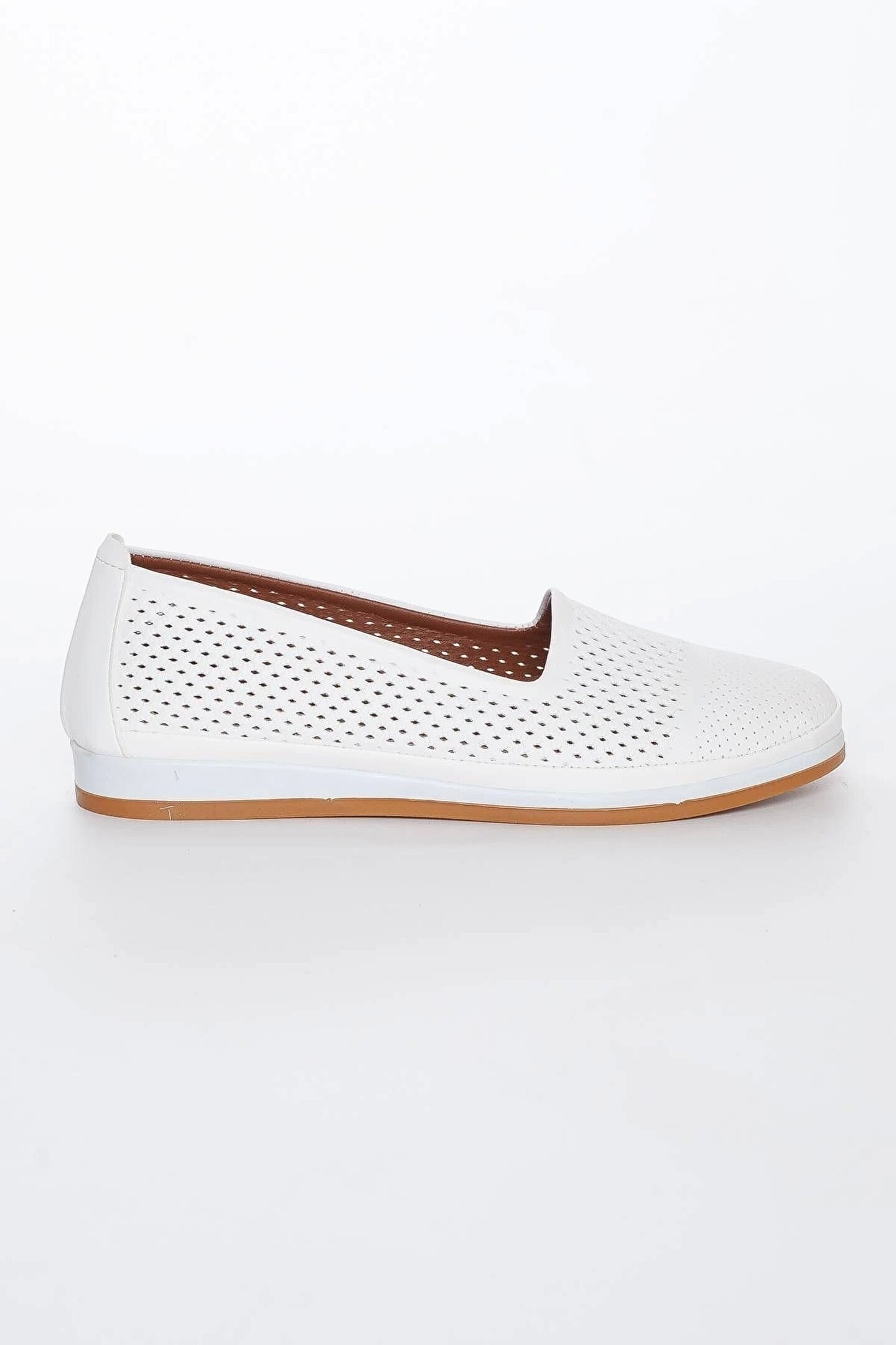 GULT Hakiki Deri Kadın Günlük Ayakkabı Beyaz Lazer Işlemeli