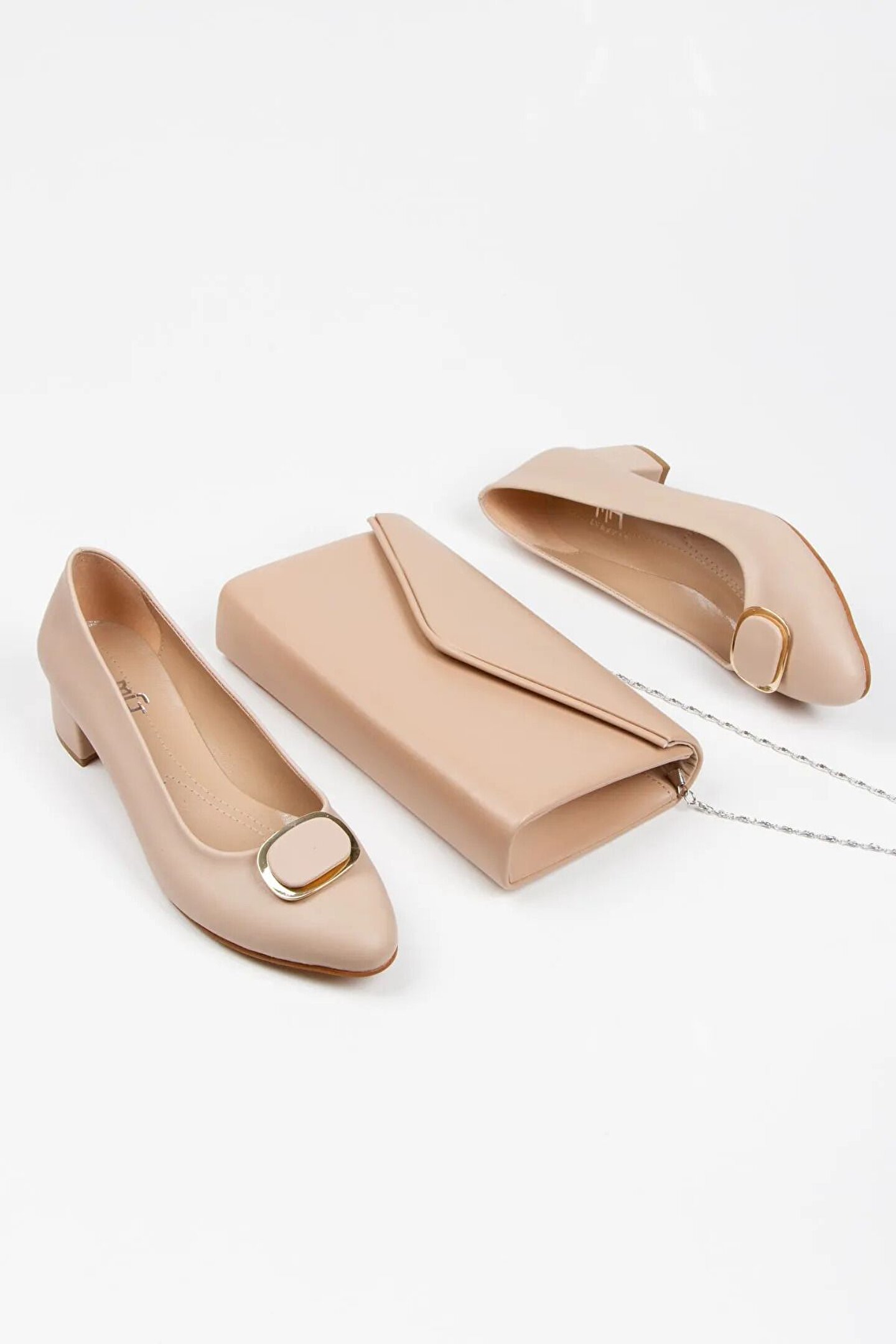 GULT Kadın 3 Cm Kalın Topuklu Çanta Kombinli Stiletto